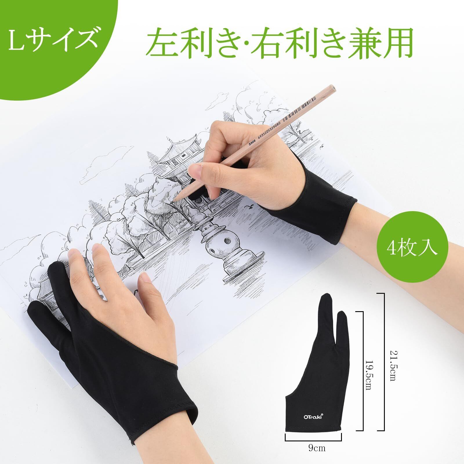 [OTraki] 二本指グローブ 4枚入 ショートスタイル 防汚 お絵描き手袋 手汗防止 ライクラ繊維 液晶タブレット手袋 誤作動防止 イラスト手袋 通気性 弾力性 Paint gloves 絵画初心者向け 9×21.5CM 黒