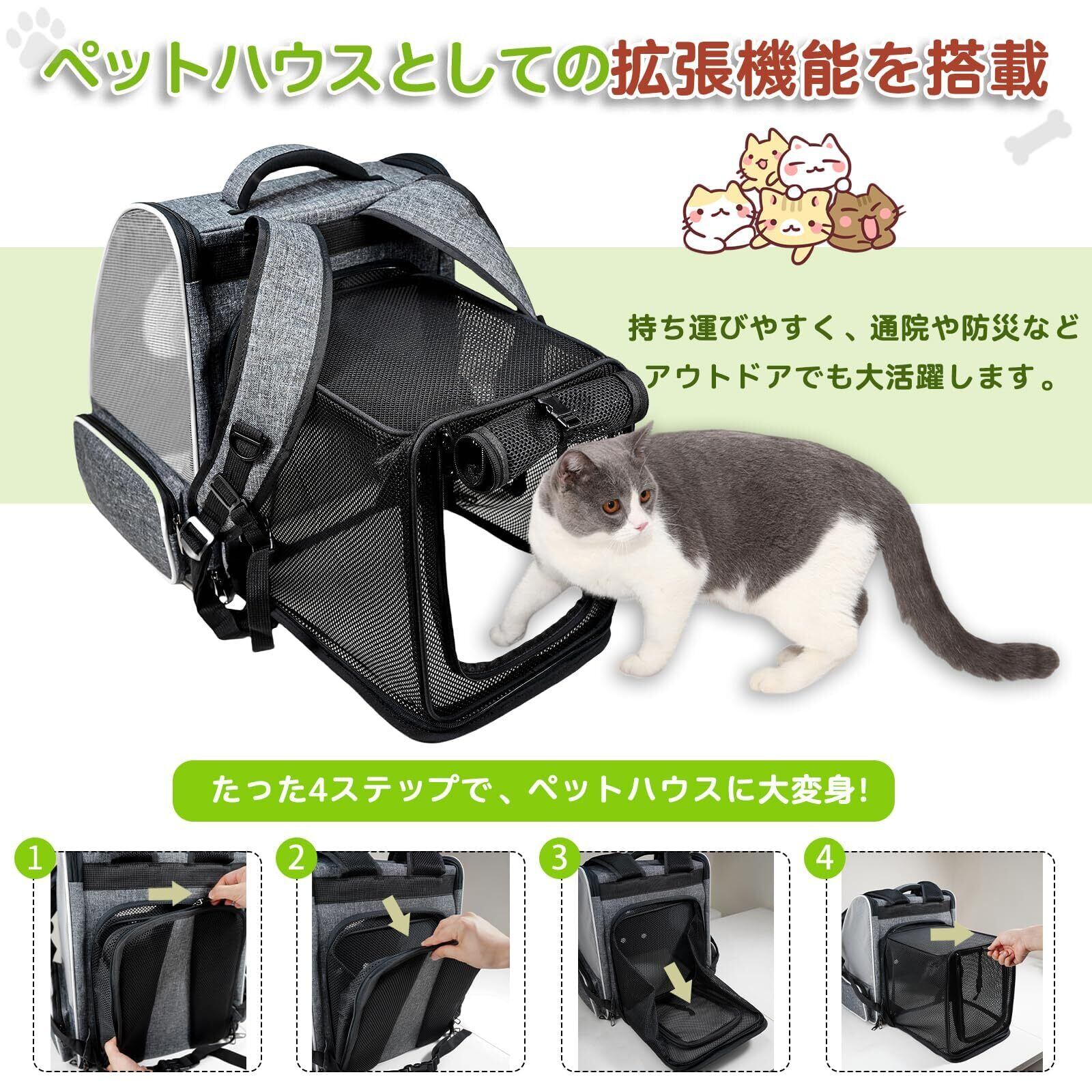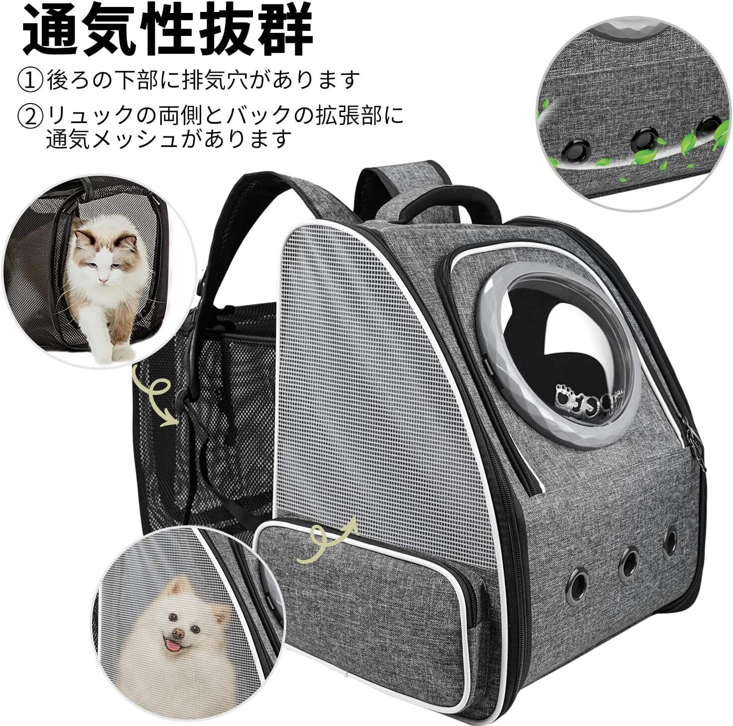 Okiki 犬 猫 ペット キャリー バッグ リュック 拡張可能 ペットハウス 旅行/通院/お出かけ/災害避難用 小型犬 猫 リュック 折りたたみ 大容量 通気性 宇宙船 【2種類の窓付き・カーテン付き】 猫バッグ