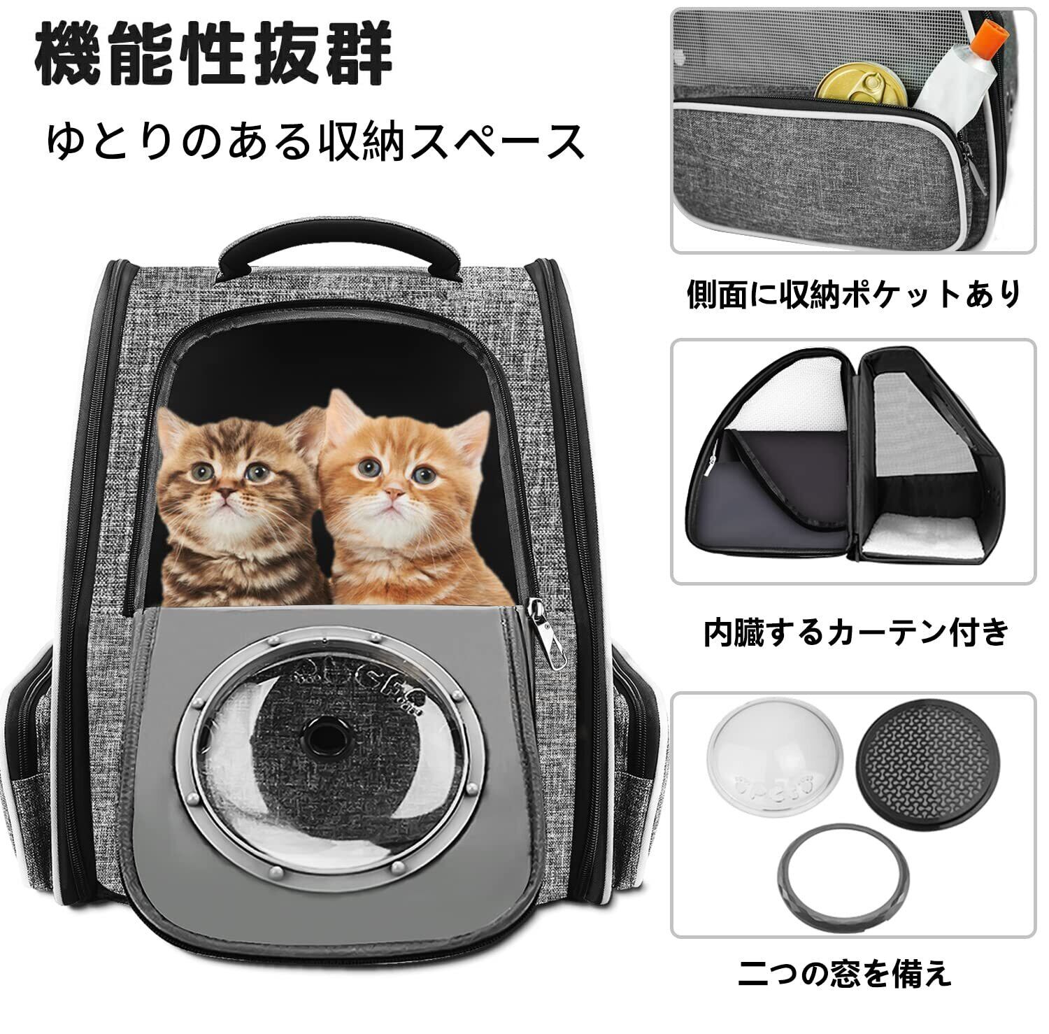 【2022最新】Okiki 犬 猫 ペット キャリー バッグ リュック 拡張可能 ペットハウス 旅行/通院/お出かけ/災害避難用 小型犬 猫 リュック 折りたたみ 大容量 通気性 宇宙船 【2種類の窓付き・カーテン付き】 猫バッグ