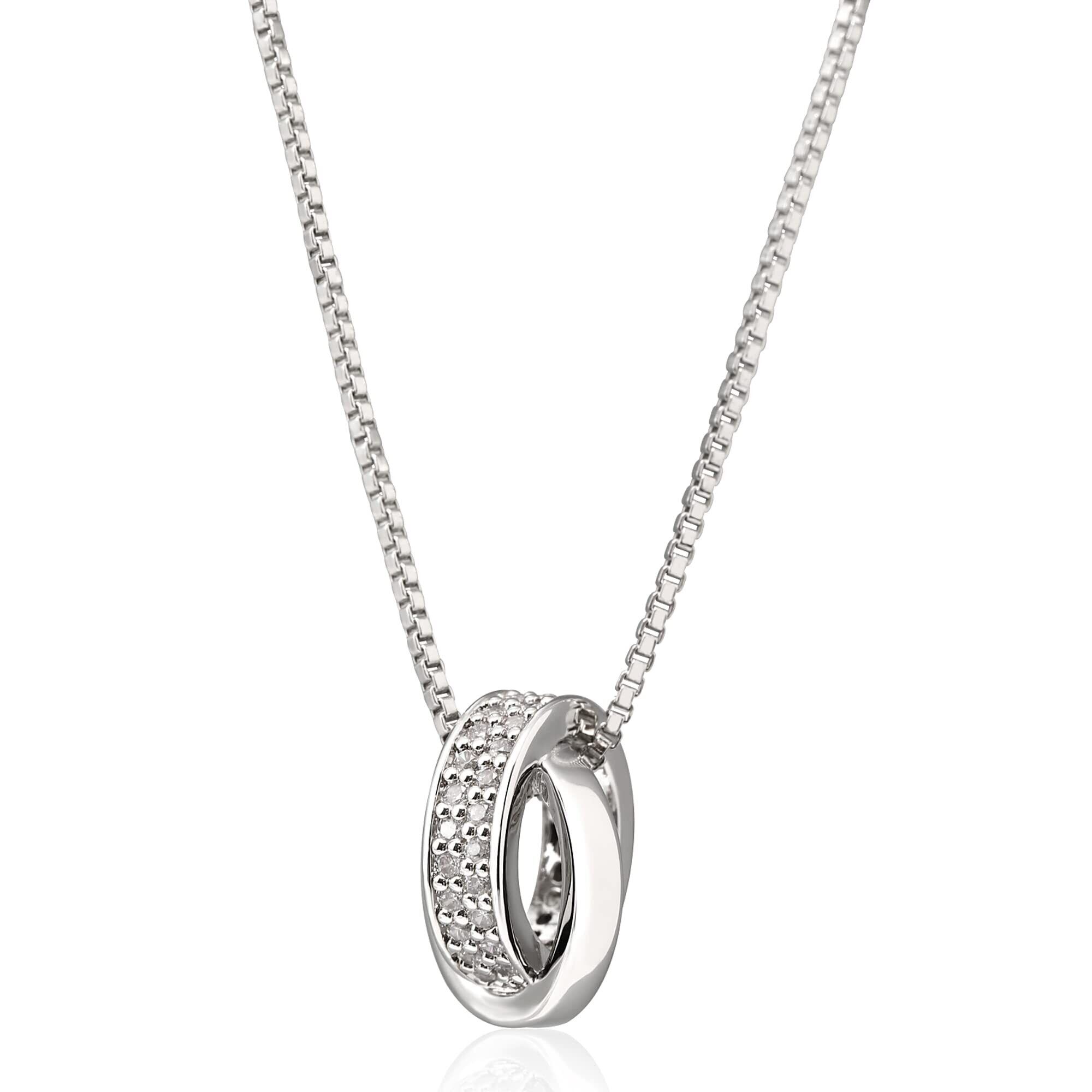 【人気商品】ネックレス レディース メンズ 人気 ダブルリング スワロフスキー ジルコニア 金属アレルギー対応 シンプル ペンダント シルバー925 アクセサリー ベネチアンチェーン 50cm フリーアジャスター