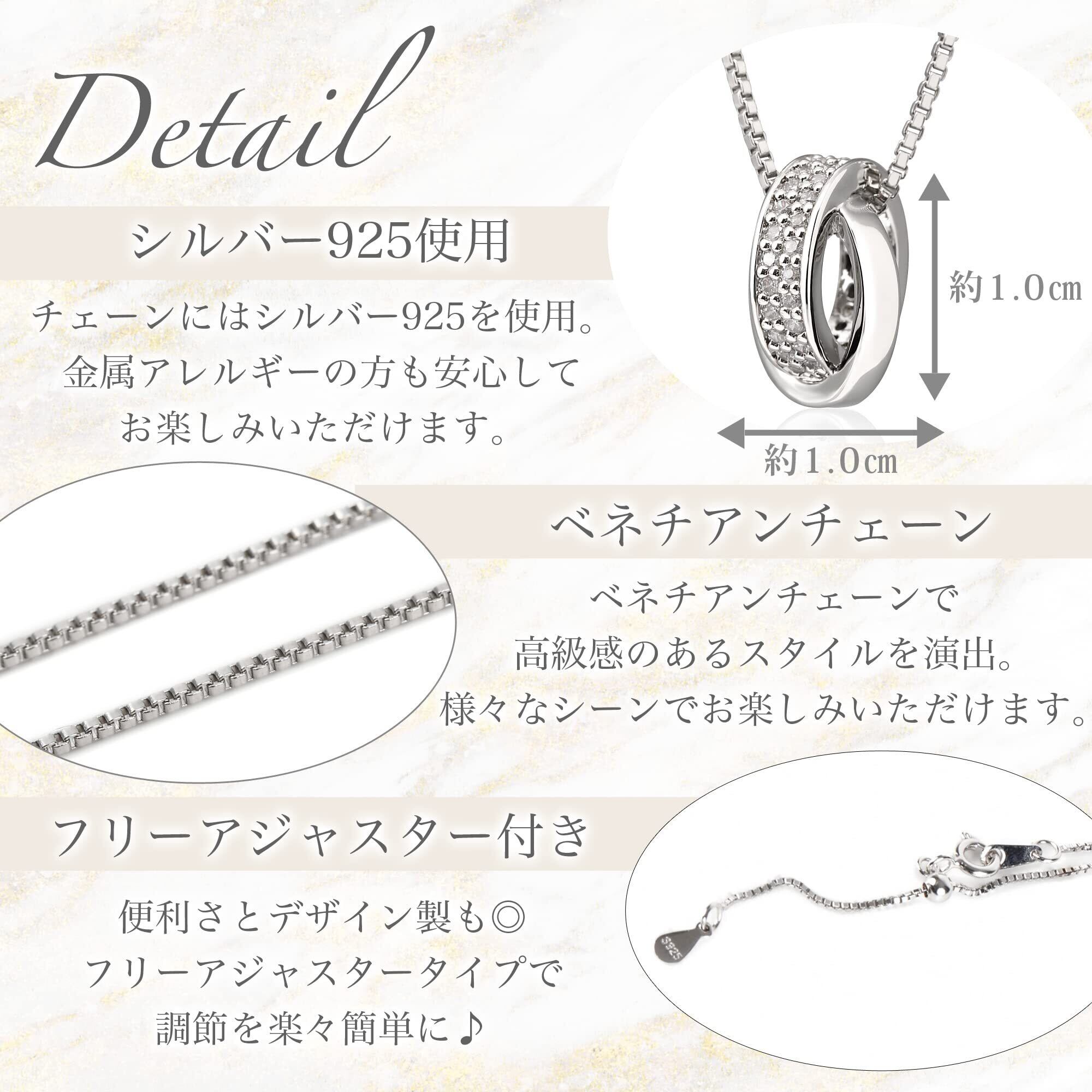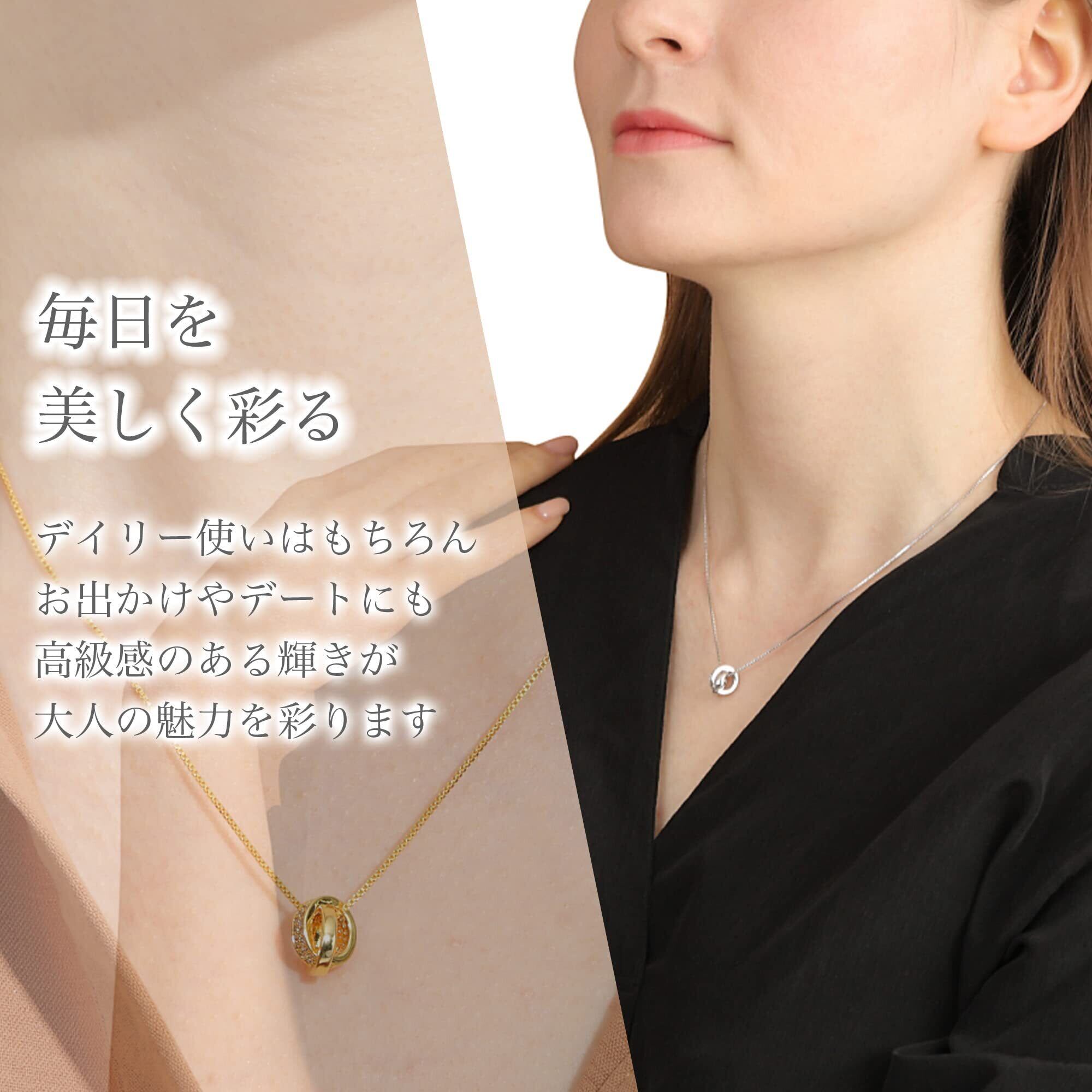 ネックレス レディース メンズ 人気 ダブルリング スワロフスキー ジルコニア 金属アレルギー対応 シンプル ペンダント シルバー925 アクセサリー ベネチアンチェーン 50cm フリーアジャスター