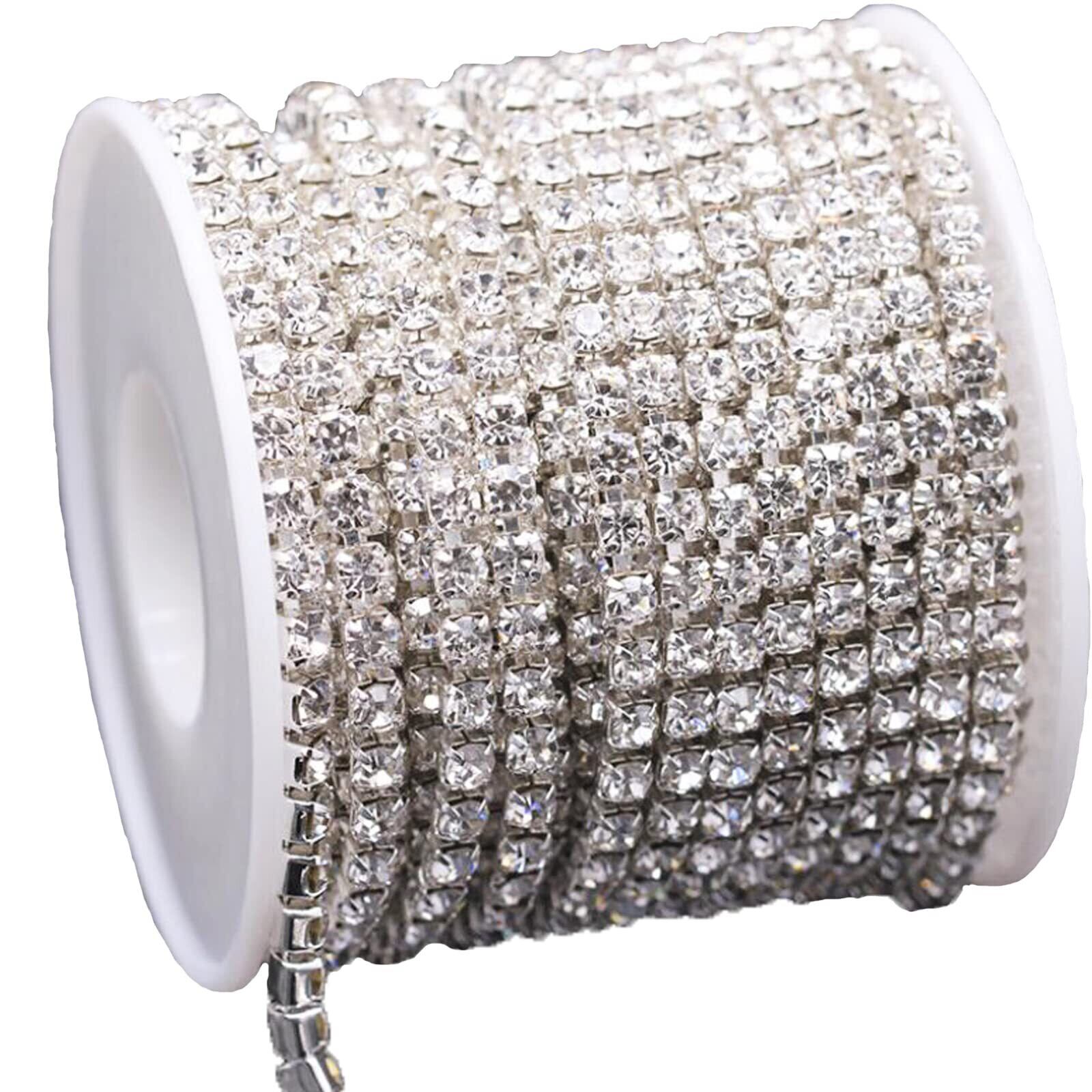 サムコス ダイヤストーンチェーン クリスタルチェーン 1巻セット 巻き クリスタル 基礎パーツ デコレーション アクセサリー DIY 手芸 手作り用品 衣類 帽子 シルバー 2mm 10M