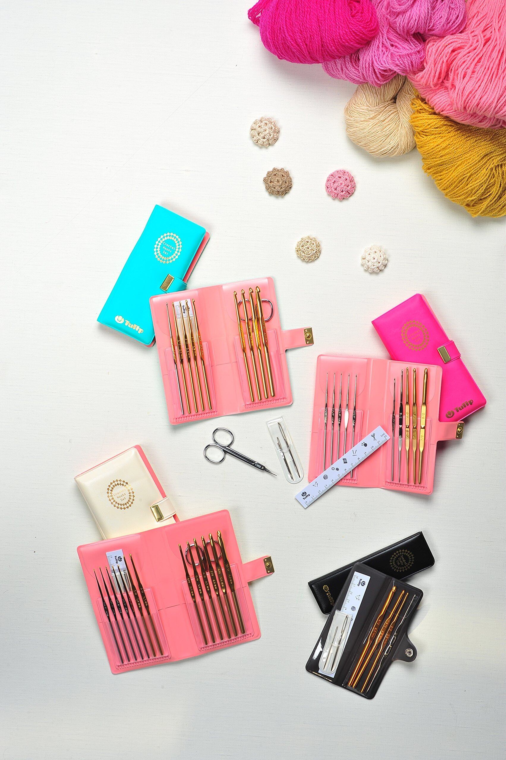 セット内容:両かぎ針1/0-2/0、片かぎ針4/0、6/0、8/0号、とじ針(2サイズ)、ものさし、ケース