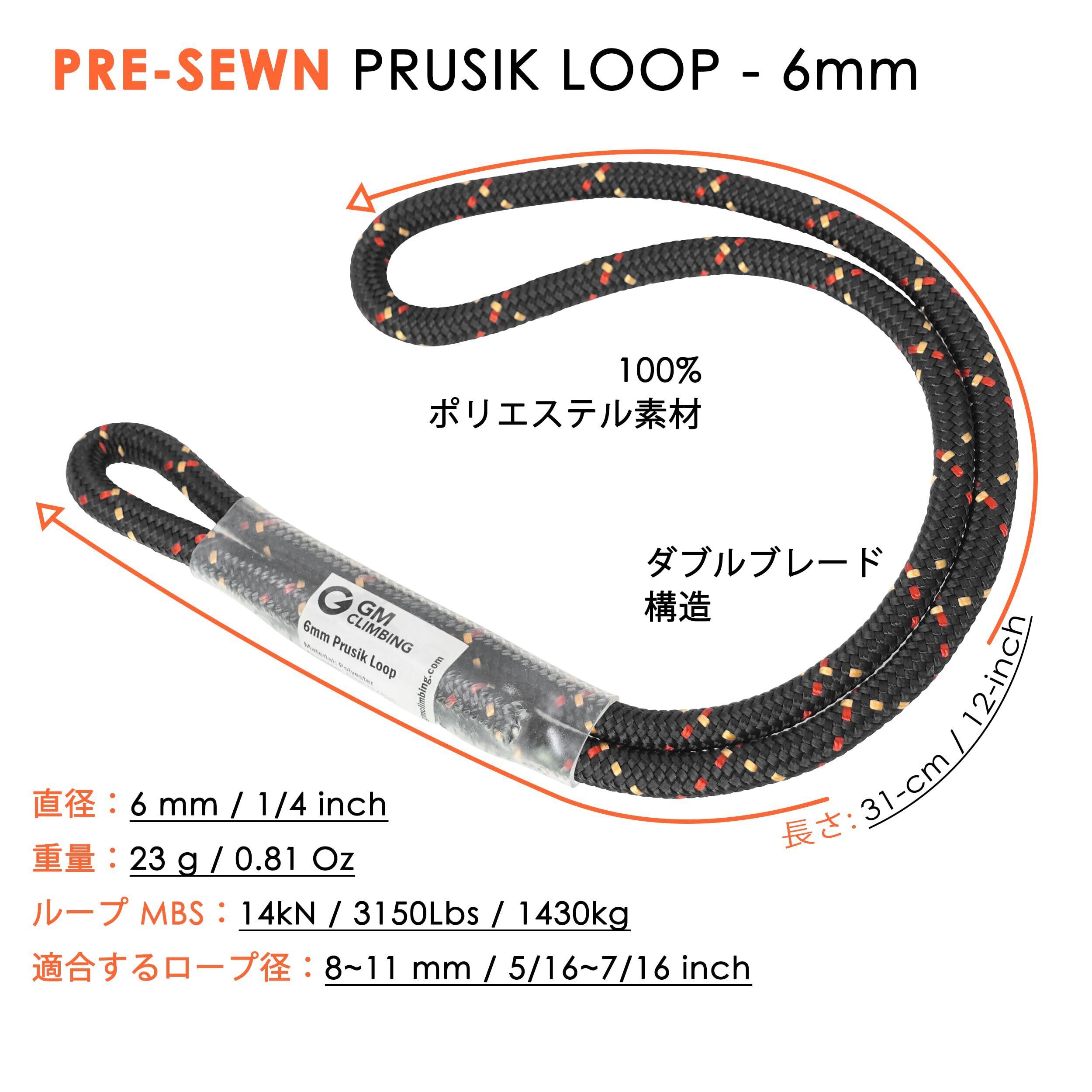 GM CLIMBING 6mm ダブルブレード プルージックループ 31cmサイズ 1本入り / 3本入り 長さは調整可能 クライミング アーボリスト