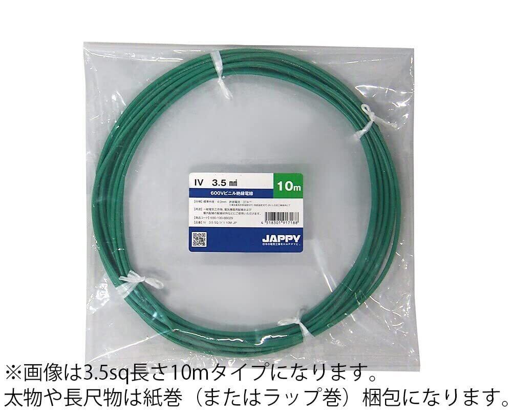 フジクラダイヤケーブル ビニル絶縁電線 IV 8 SQ 緑 5M 巻き