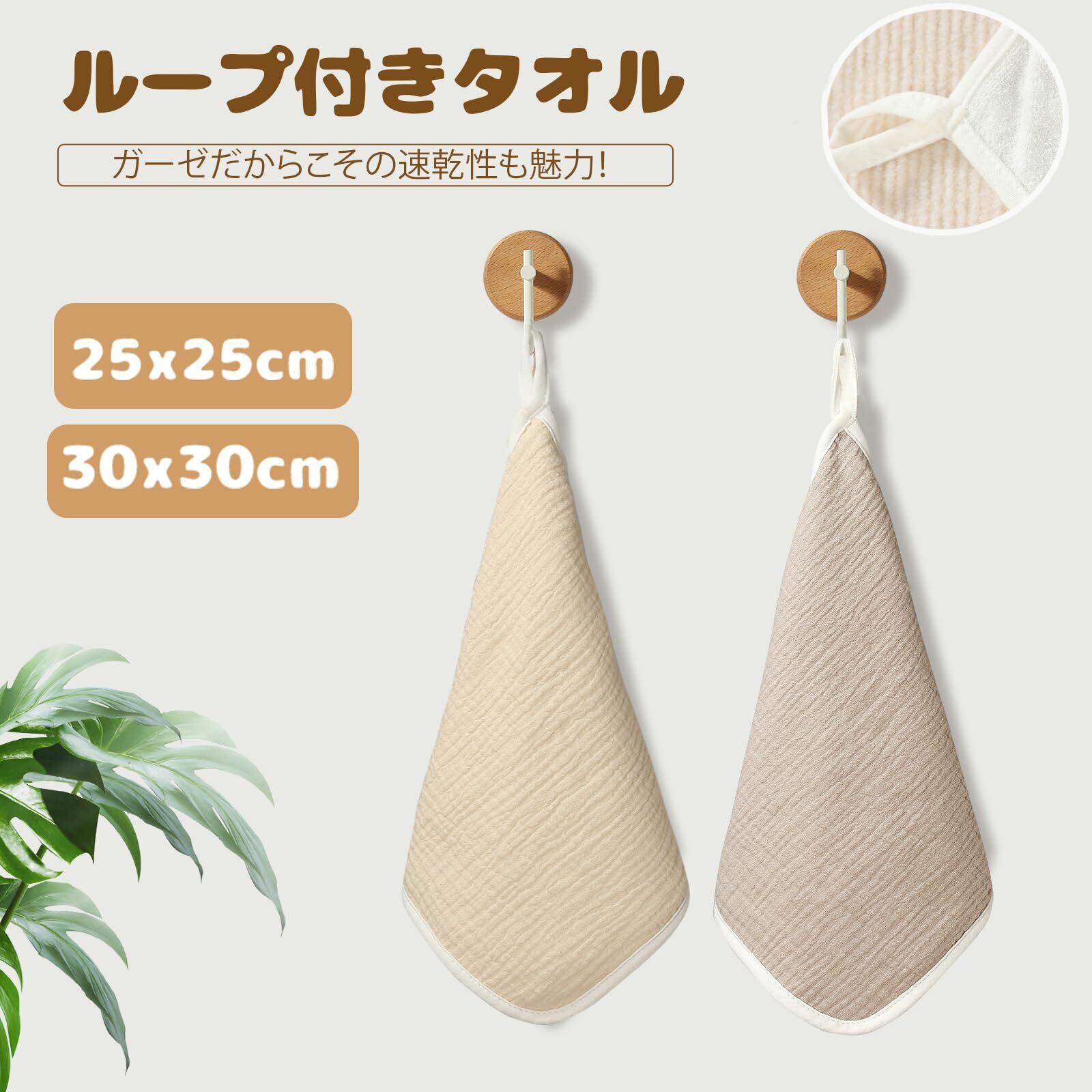 [MOMSMENU] ガーゼハンカチ 赤ちゃん ベビー タオル 綿 柔らかく 名前入 保育園 ループ付きタオル 25x25cm 5枚セット