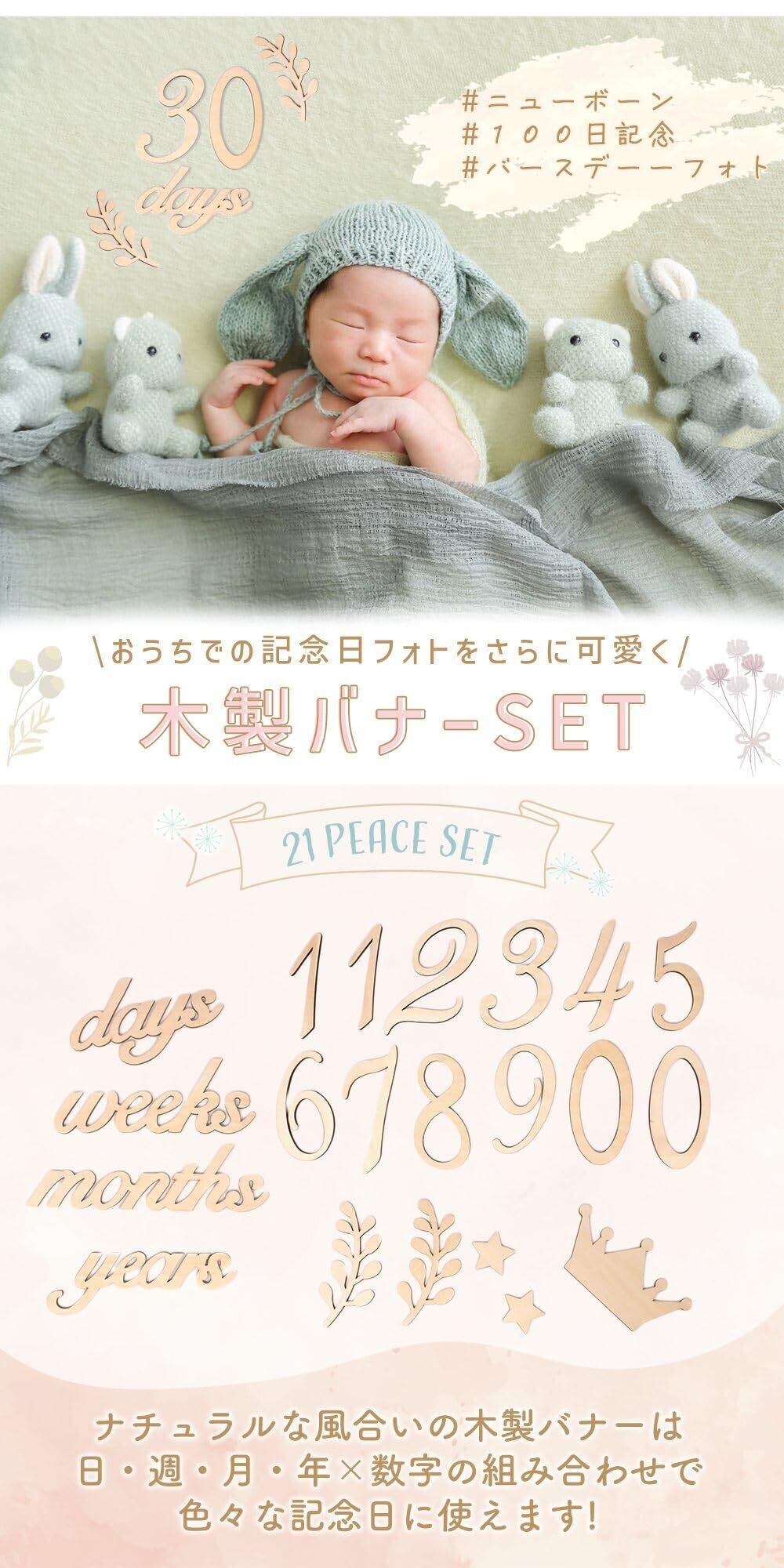 【月齢や記念日に対応した数字セット】数字や日付のセットで、30日、100日、ハーフバースデー、1歳の記念撮影に幅広く活用可能!繰り返し使える便利アイテムです