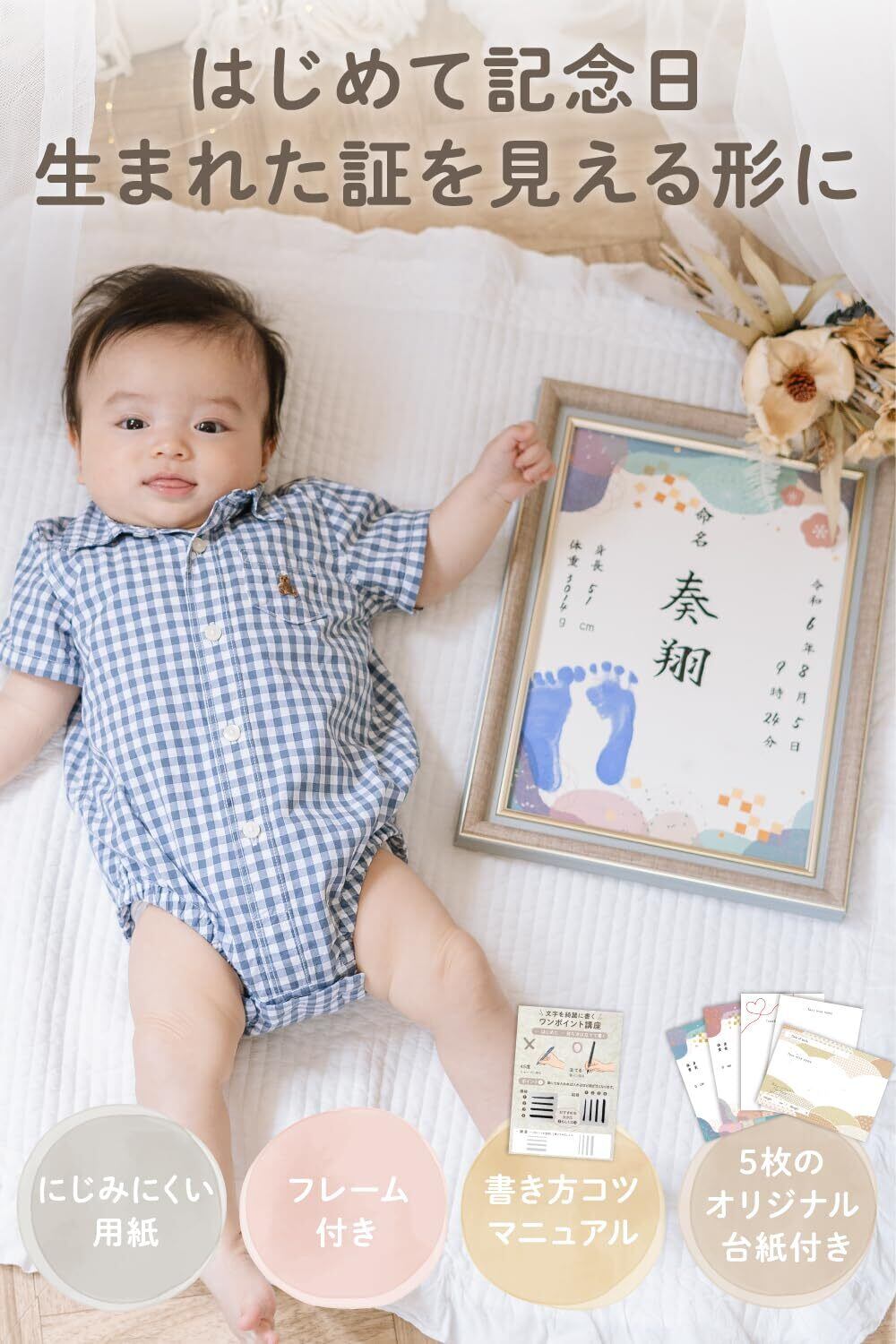 ※手形スタンプ、筆ペンは別途。用紙は印字、代筆品ではございませんので、お客様にてお子様のお名前を用紙にご記入ください。