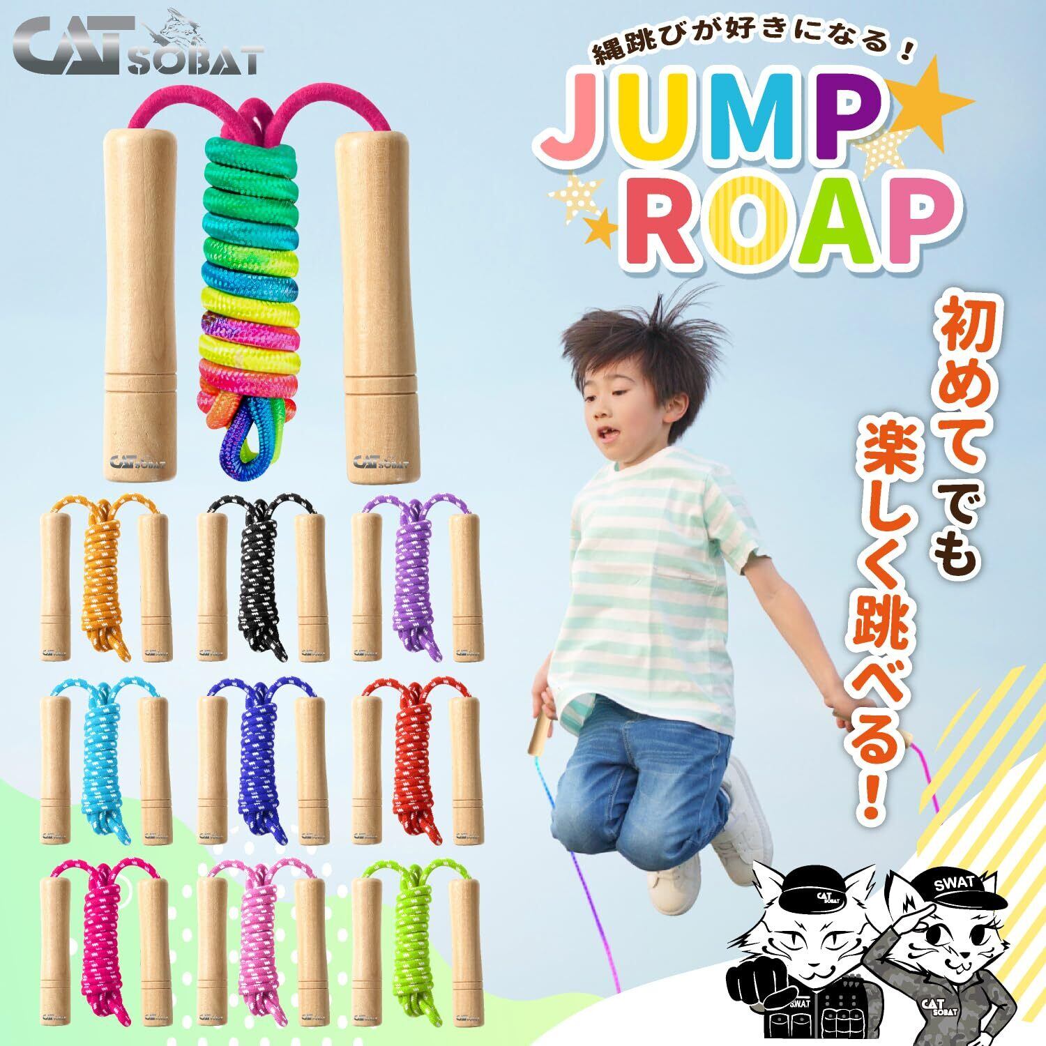 【特価セール】縄跳び 子供用 幼児用 小学校 保育園 なわとび教室 ロープ長さ調整可 かわいい木製デザイン【30日付き】