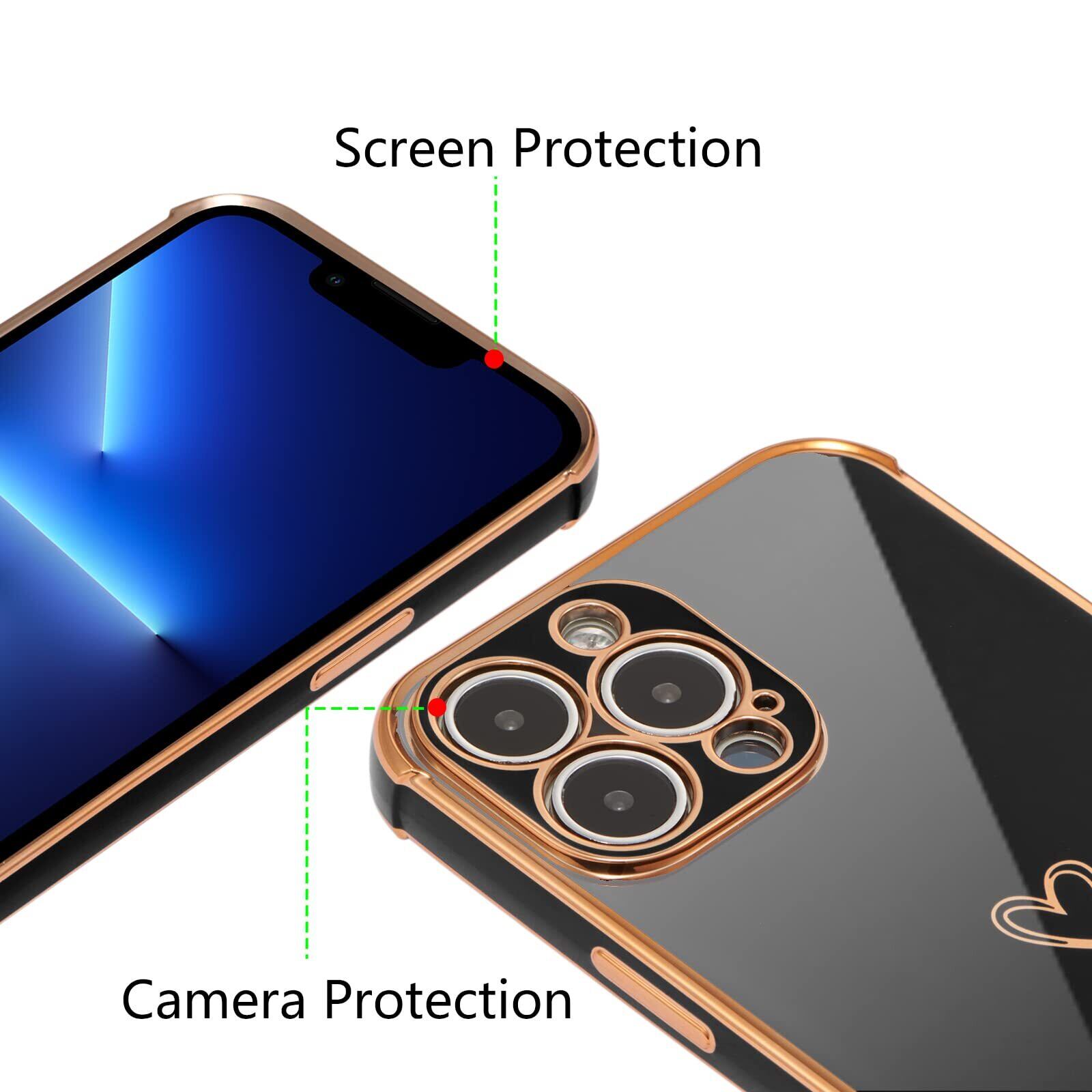 ZTOFERA iPhone 14 Pro 用 ハートケース iPhone 14 Pro ケース 柔軟な TPU シリコン スマホケース メッキ加工 ソフト 軽量 耐衝撃 おしゃれ 韓国 可愛い アイフォン 14 Pro ケース 女子 女性 心パターン 携帯電話カバー ワイヤレス充電対応 (ブラック)