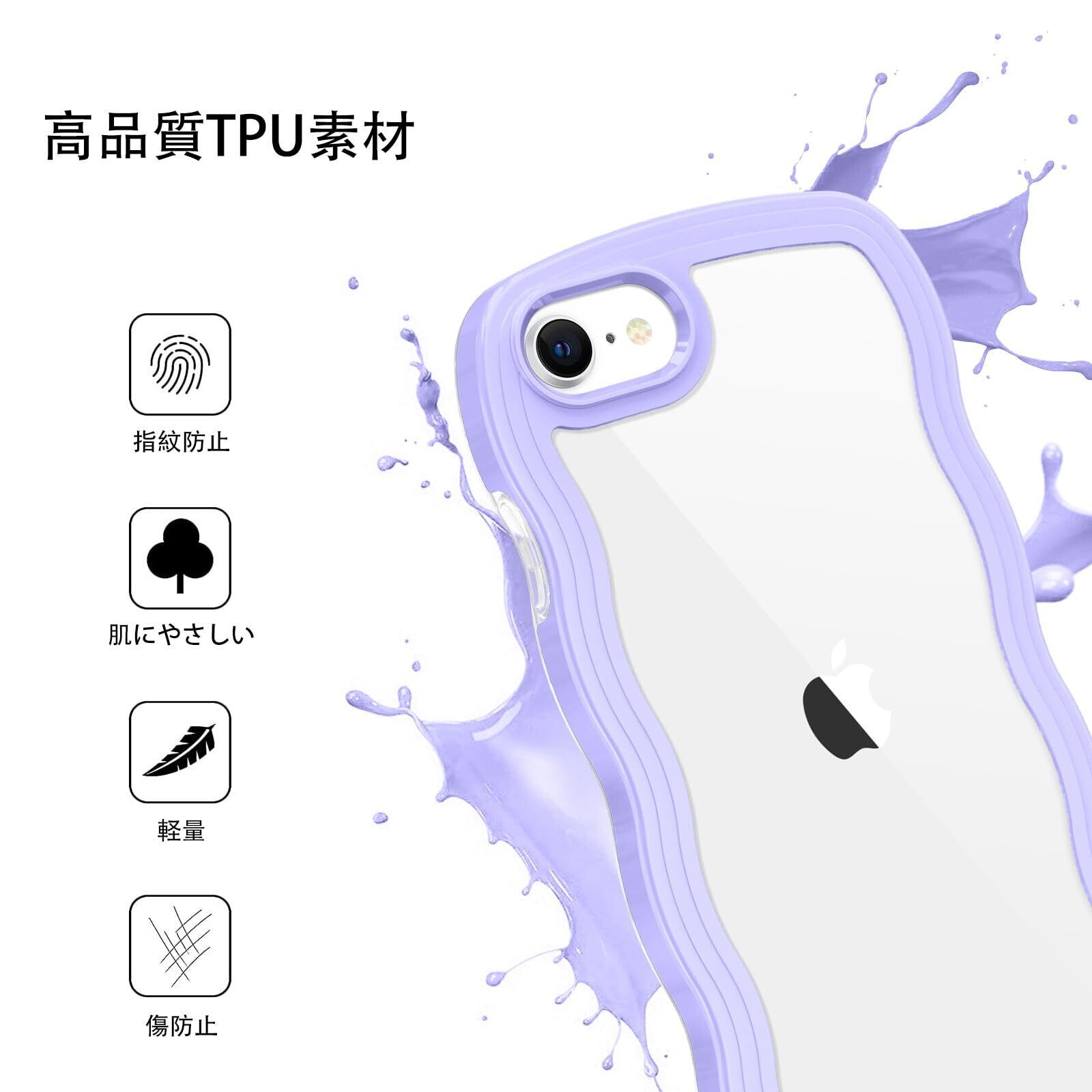 【在庫セール】BENTOBEN iPhone SE 第3世代 用/iPhone SE2 / iPhone8 / iPhone7 ケース クリア TPU+PC 韓国 可愛い ウェーブ ソフト 滑り止め 薄型 軽量 耐衝撃 おしゃれ スマホケース ストラップホール付き アイフォン SE3 SE2 8 7 ケース 4.7インチ パープル