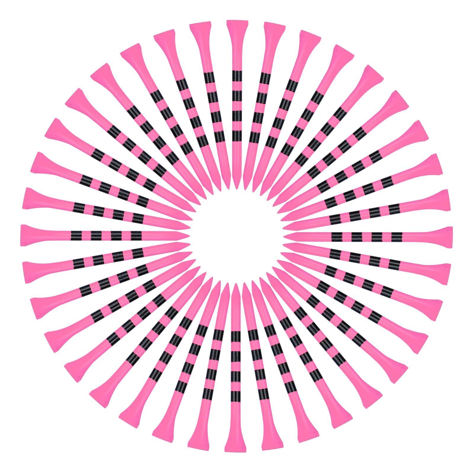 【洗練されたデザイン】ゴルフティーはピンクをベースに黒でボーダーラインをいれております。 ピンクのティーに黒のストライプ柄でデザインもよく、目立ちやすいので無くしづらい。
