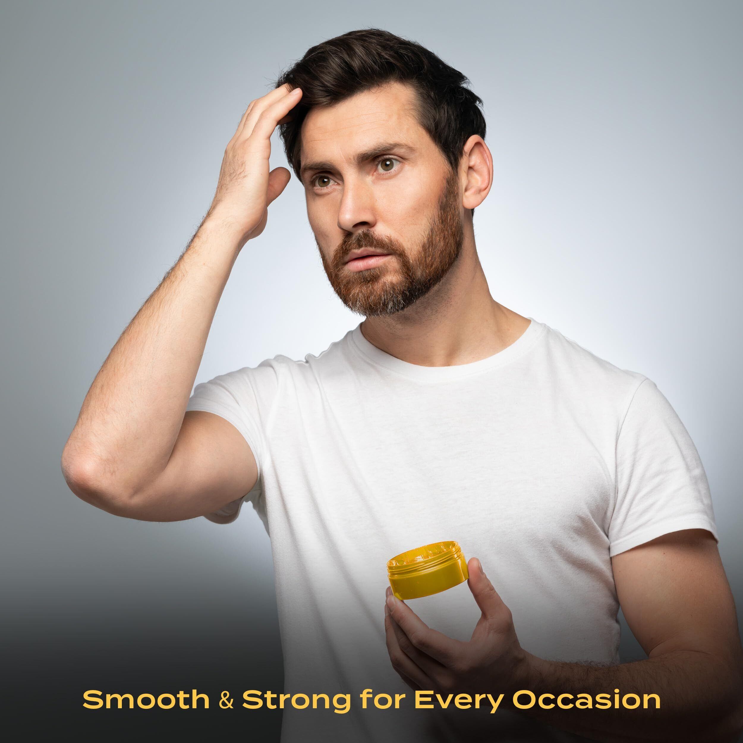 日本人の髪質でもしっかりと抑えつけられる強いホールド力を実現しました。手に取って伸ばす際も煩わしさのない伸びの良さ、髪へ塗布した後もべたつかない、水性なのでシャンプーで簡単に洗い流せるという、操作性の高さを兼ね備えた高品質ポマードです。