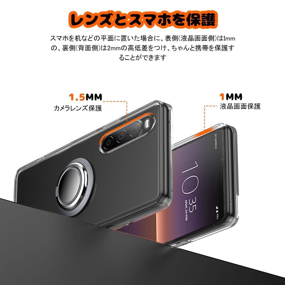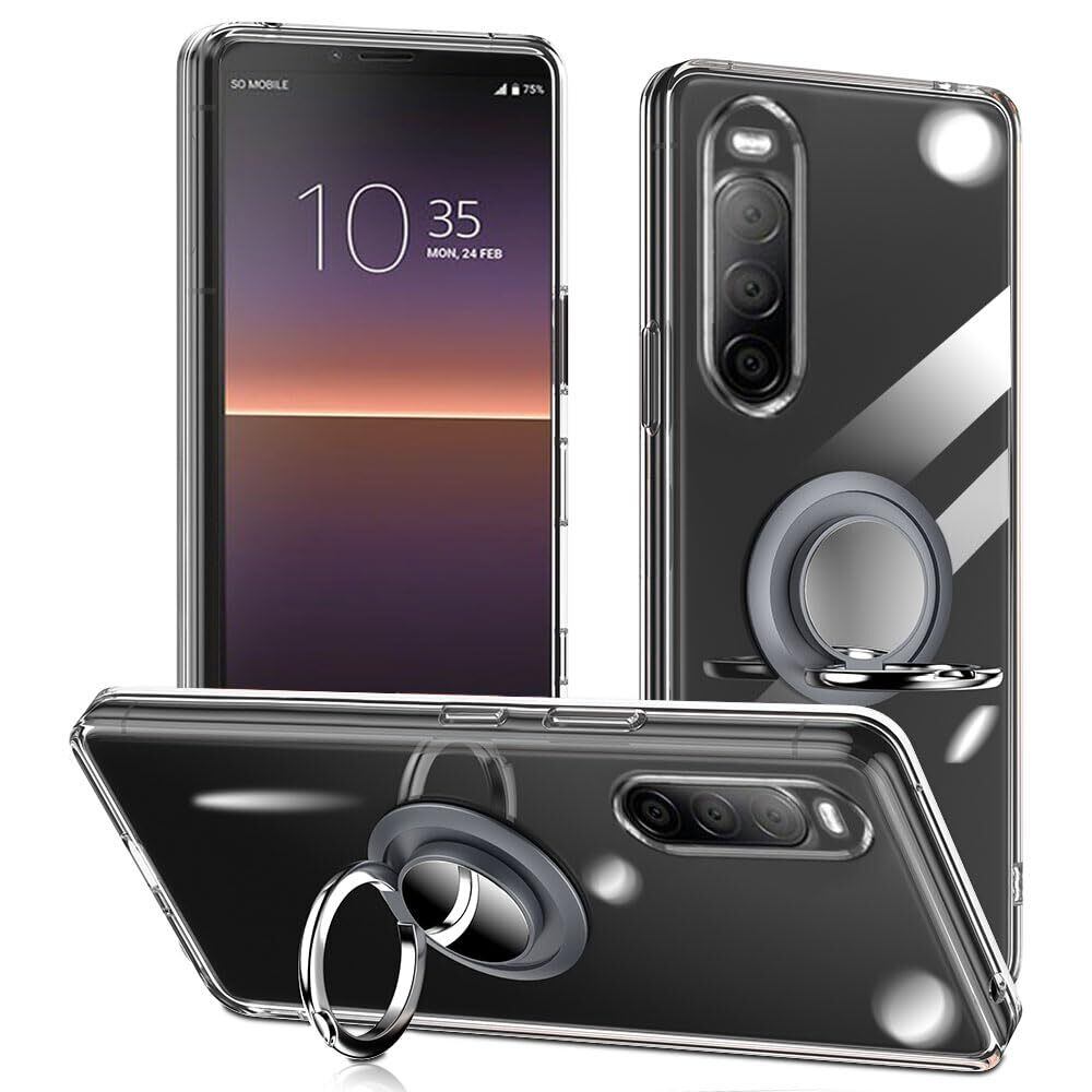Xperia 10 II SO-41A ケース SOV43 リング付き 透明 エスクペリア10ii スマホケース A001SO XQ-AU42 リング クリア シリコン 薄型 スタンド機能 耐衝撃 耐久 滑り止め(Xperia 10 II クリア)