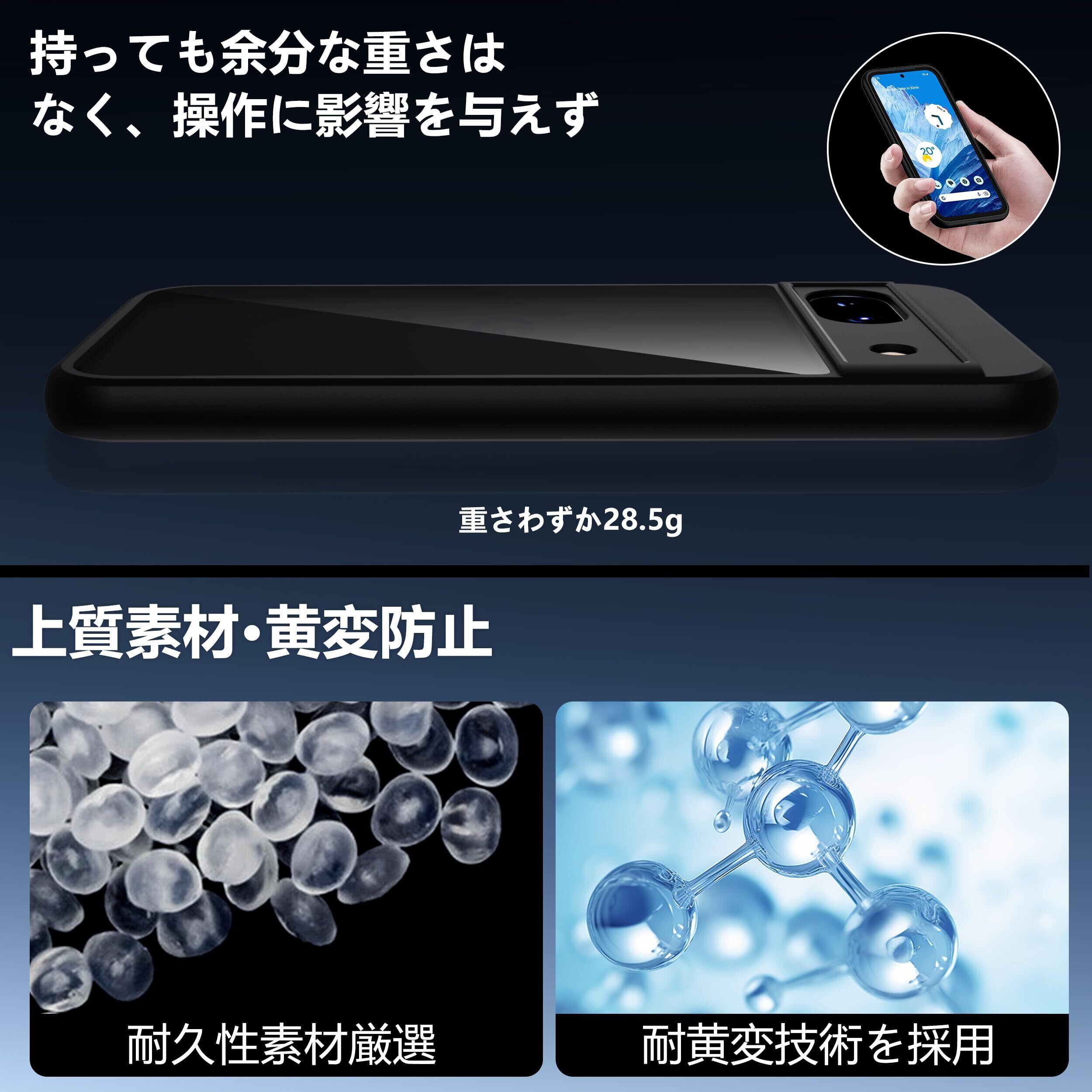 【人気商品】Google Pixel 8a ケース ブラック 黄変防止 グーグルピクセル8a ケース 耐衝撃 ガラスフイルム保護付き 指紋防止 落下防止 耐久性 ストラップホール付 薄型 軽量 ソフトカバー ワイヤレス充電対応 googleピクセル8a