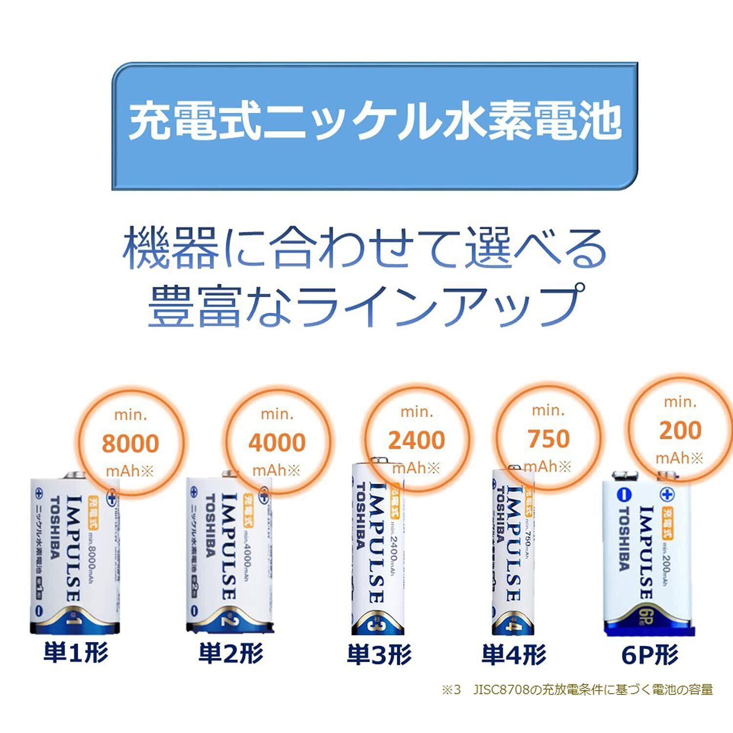 TOSHIBA ニッケル水素電池 充電式IMPULSE 高容量タイプ 単3形充電池(min.2,400mAh) 4本 TNH-3A 4P