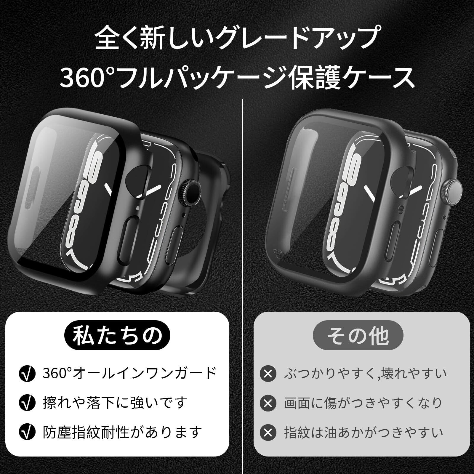 【2024改良ケース】YUGYUG 対応 アップルウォッチ カバー Series SE2/SE/6/5/4 アップルウォッチ ケース PC素材 IP68 防水ケース 360ど度 Apple Watch ケース ガラスフィルム 一体型 日本旭硝子材 二重構造 Apple Watch カバー 全面保護 強化ガラス キズ防止(40mm,ブラック)