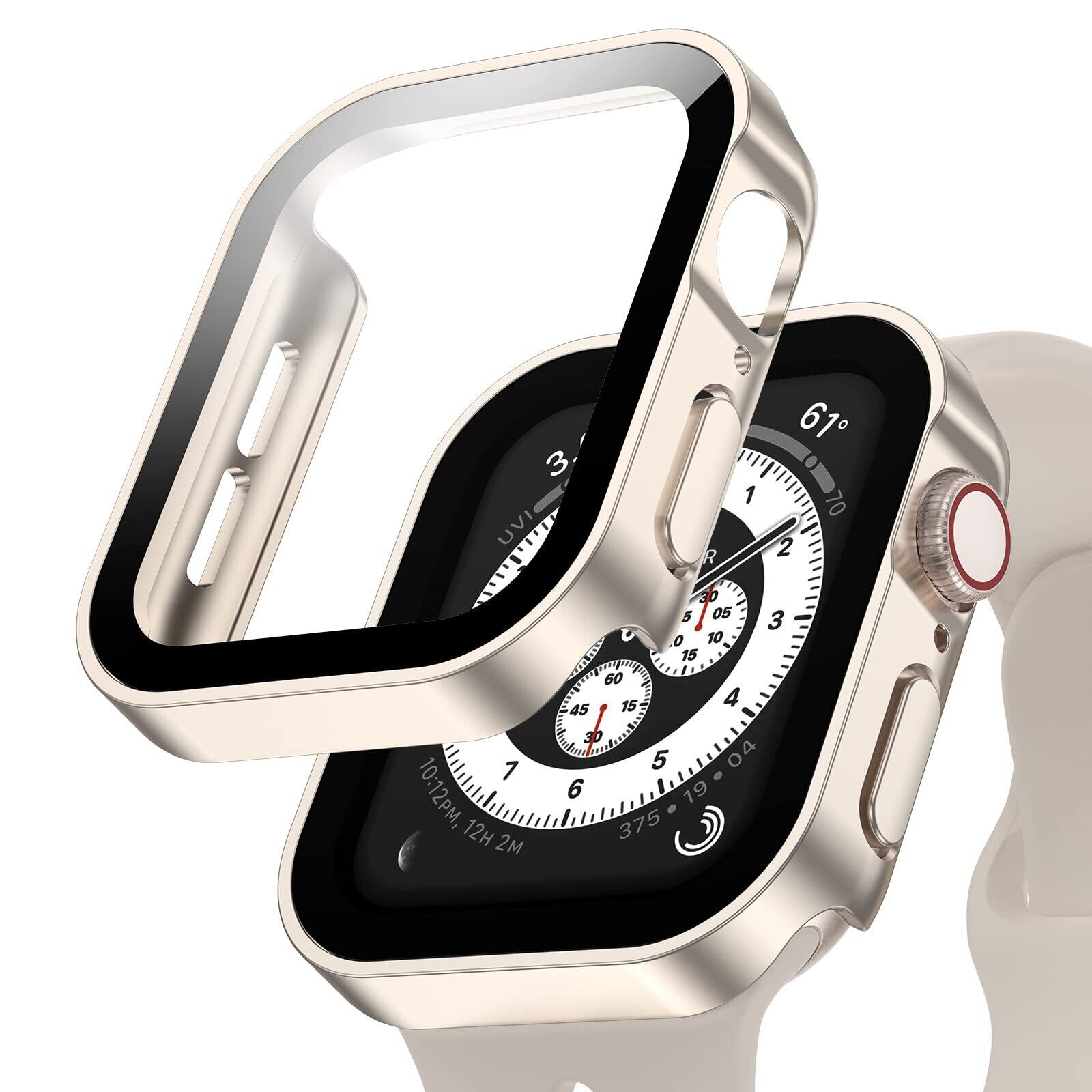 Apple Watch 用 防水ケース 46mm 42mm アップルウォッチ ケース 3D直角エッジデザイン 保護 アップルウォッチ Series 10 カバー ガラスフィルム 一体型 高透過率 日本旭硝子材 二重構造 硬度9H 一体型 PC素材 つや消しプロセス 軽量 全面保護 指紋防止 頑丈 耐衝撃 傷防止 装着簡単 iwatch (46mm,マットのスターライト)