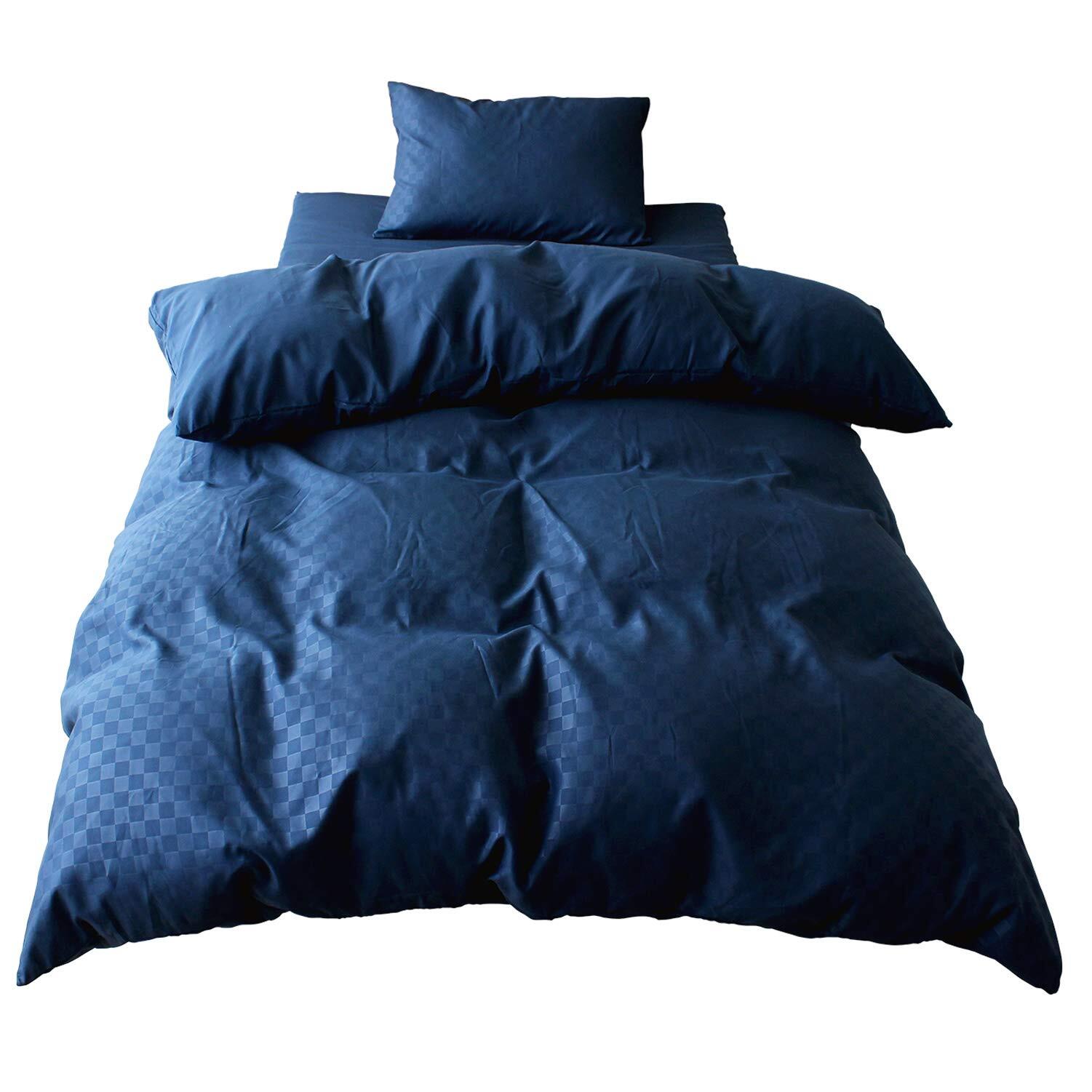 メリーナイト 布団カバー シングル3点セット 市松柄 ネイビー 敷布団用 (掛け布団カバー 敷き布団カバー 枕カバー) 洗い替え 模様替え ゲスト用 速乾 シワになりにくい L3-300-72