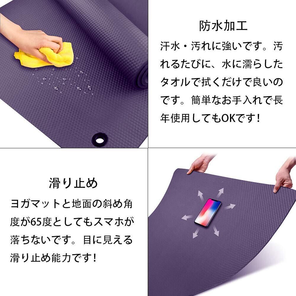 【用途】ヨガマット、トレーニングマット、ピラティスマット、エクササイズマット、防音マットなどに使用可能です 。また、収納バック付きますので、持ち運び簡単、肩掛けでもOKです。