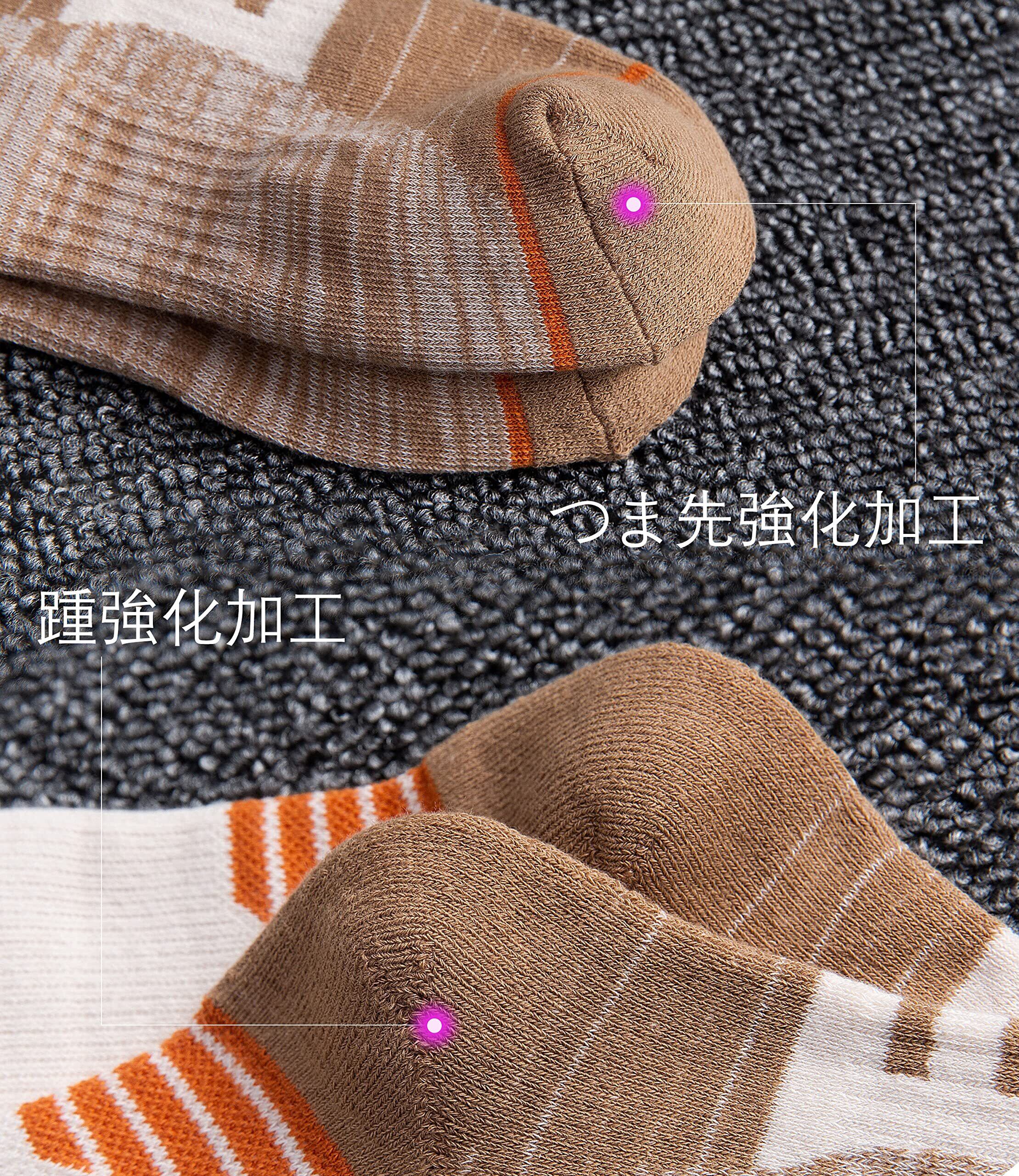 クッション 機能: 底のパイルがかなりしっかりと肉厚、衝撃を受ける部分をパイルにすることによって足を保護、疲れない、運動するときに重宝しています、長い距離を走っても問題なく使えてます。クッションも有り履き心地良いです。つま先部もやや厚めになっていて耐久性も良さそうです、丈夫で長持ち