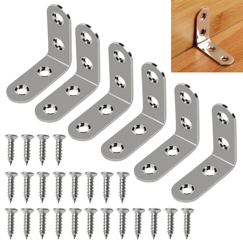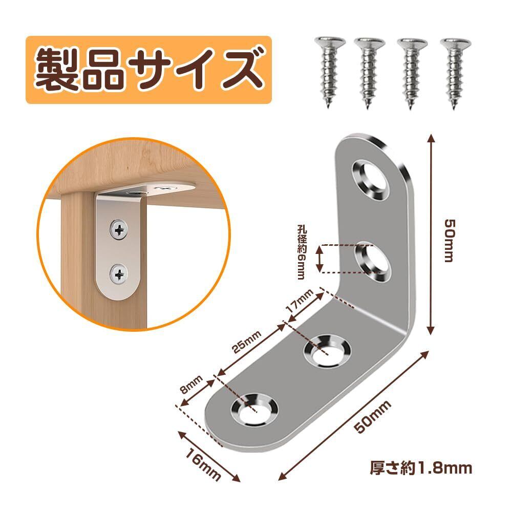 【新着商品】アングルブラケット ステンレススチール製 l字金具 ステンレス製 汎用 アングル ブラケット ラティス 固定金具 l型金具 アングル l字ブラケット 直角 固定 ステンレス製ネジ24本付き 家具の補強 固定金具 50*50*16mm 【6個入り】