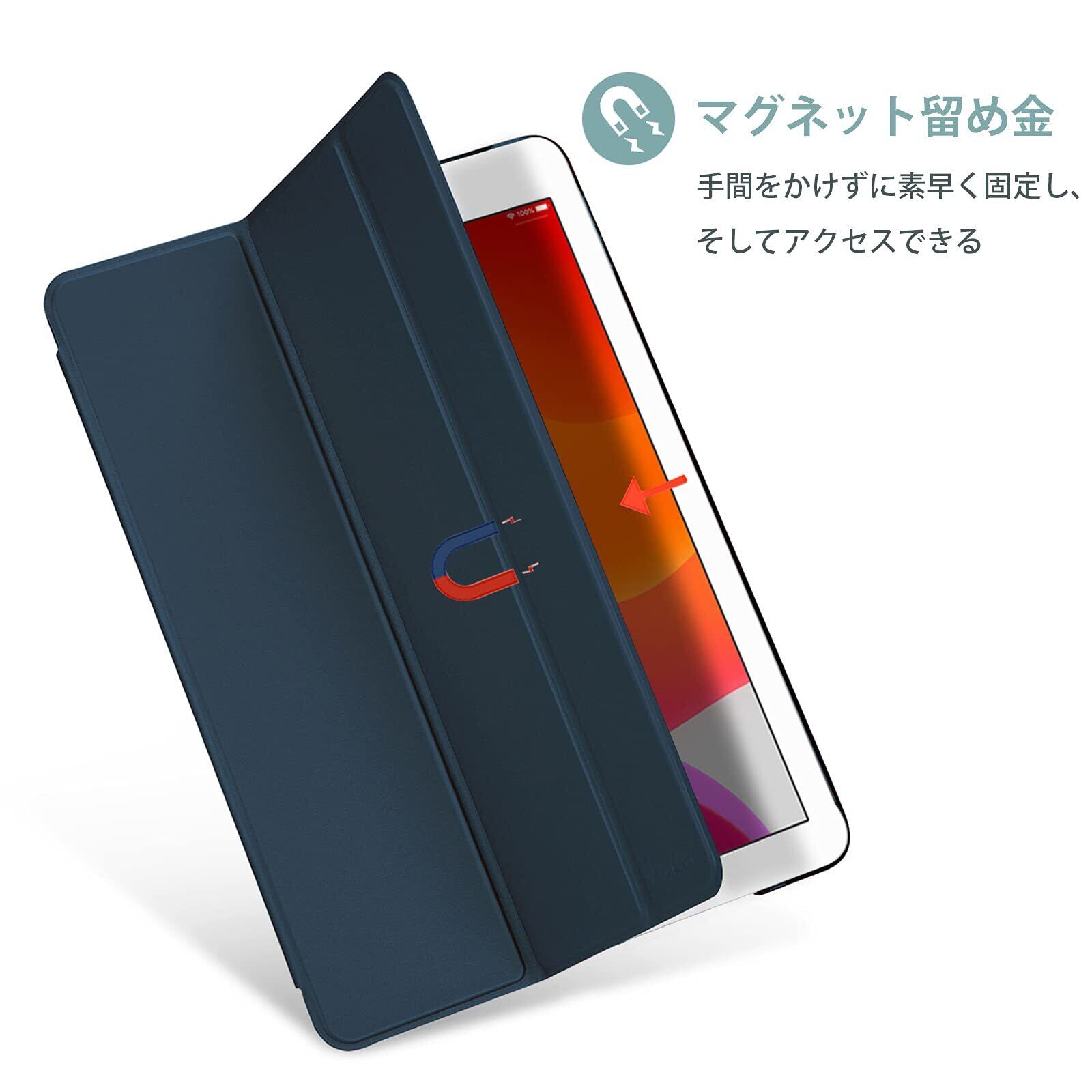 ProCase iPad 9/8/7 ケース (2021 2020 2019) 半透明バックカバー 軽量 スタンド iPad 10.2" 対応 - ネイビー
