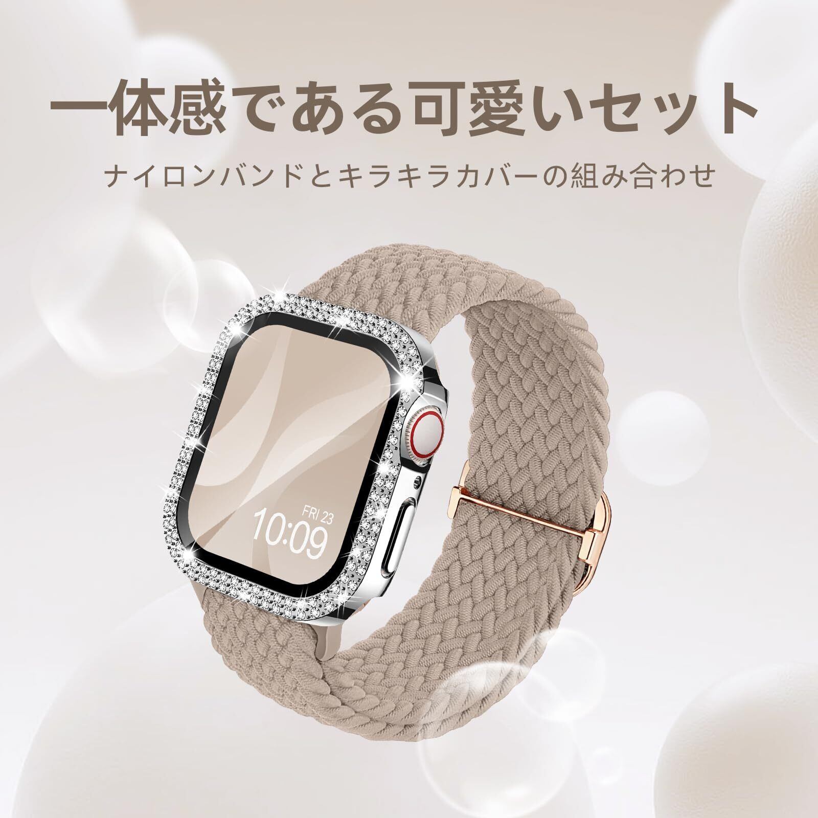 [Missair] コンパチブル Apple Watch バンド ナイロン アップルウォッチ バンド 編み込み ゴム Apple Watch キラキラ カバー付き ダイヤモンド 互換用のApple Watch バンドとケース 一体型 全面保護 オシャレ レディース (Series6/5/4/SE 40mm)