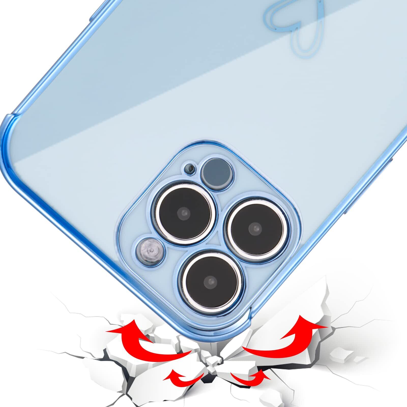 ZTOFERA iPhone 14 Pro Max 用 ハートケース iPhone 14 Pro Max ケース 柔軟な TPU シリコン スマホケース メッキ加工 ソフト 軽量 耐衝撃 おしゃれ 韓国 可愛い アイフォン 14 Pro Max ケース 女子 女性 心パターン 携帯電話カバー ワイヤレス充電対応 (シエラブルー)