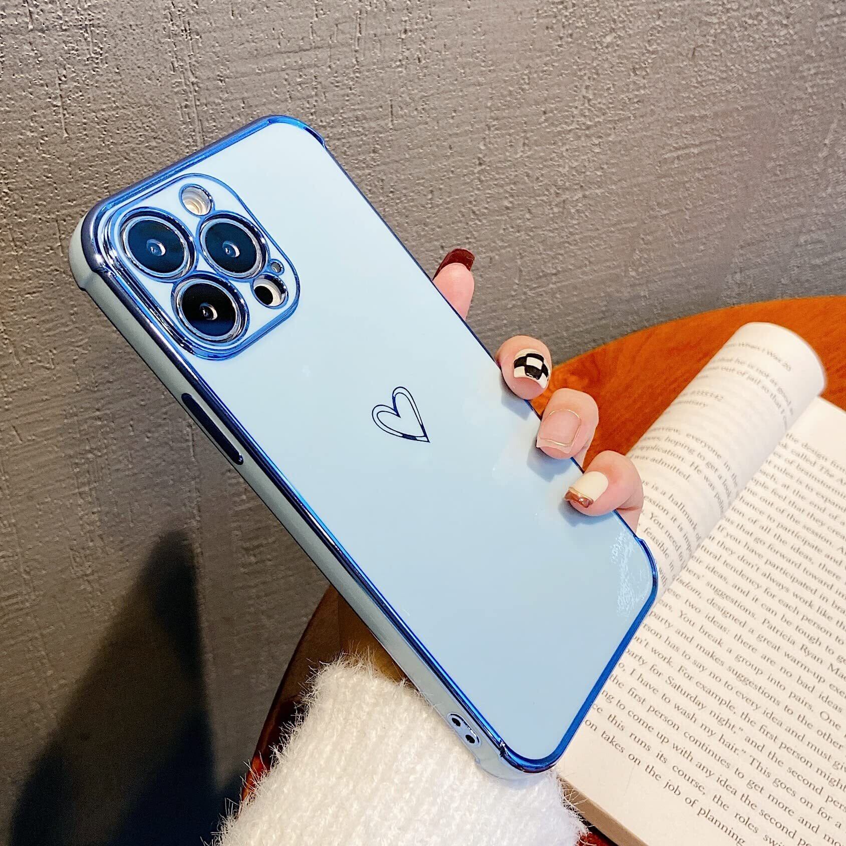 【特価商品】ZTOFERA iPhone 14 Pro Max 用 ハートケース iPhone 14 Pro Max ケース 柔軟な TPU シリコン スマホケース メッキ加工 ソフト 軽量 耐衝撃 おしゃれ 韓国 可愛い アイフォン 14 Pro Max ケース 女子 女性 心パターン 携帯電話カバー ワイヤレス充電対応 (シエラブルー)