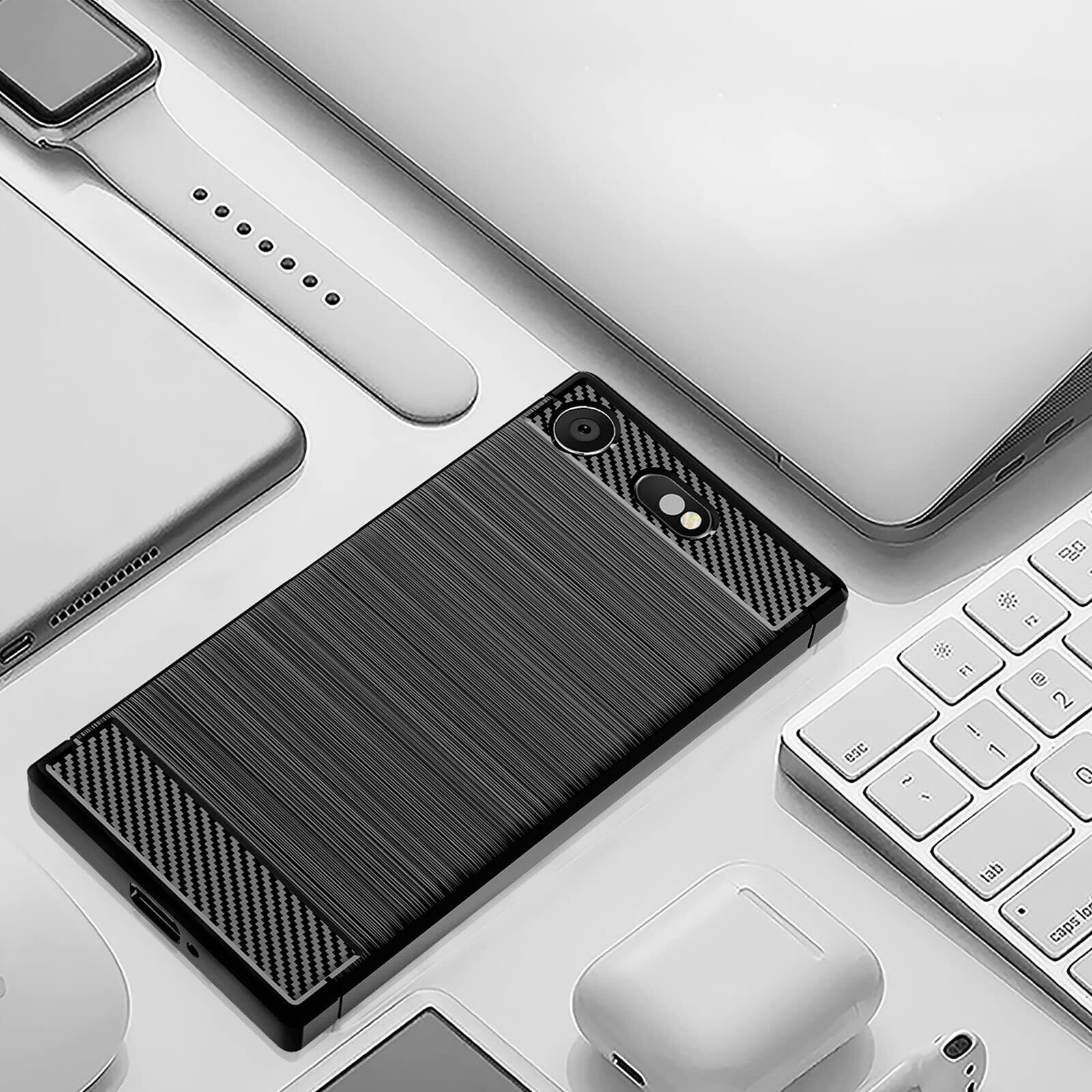 【UNEED】Sony Xperia XZ1 Compact 用の スマホケース SO-02K用の ケース カバー ケース 炭素繊維カバー (素材/TPU) 指紋防止 滑り止め 薄型 軽量 耐衝撃 簡易脱着 ソフトケース カラー:黒