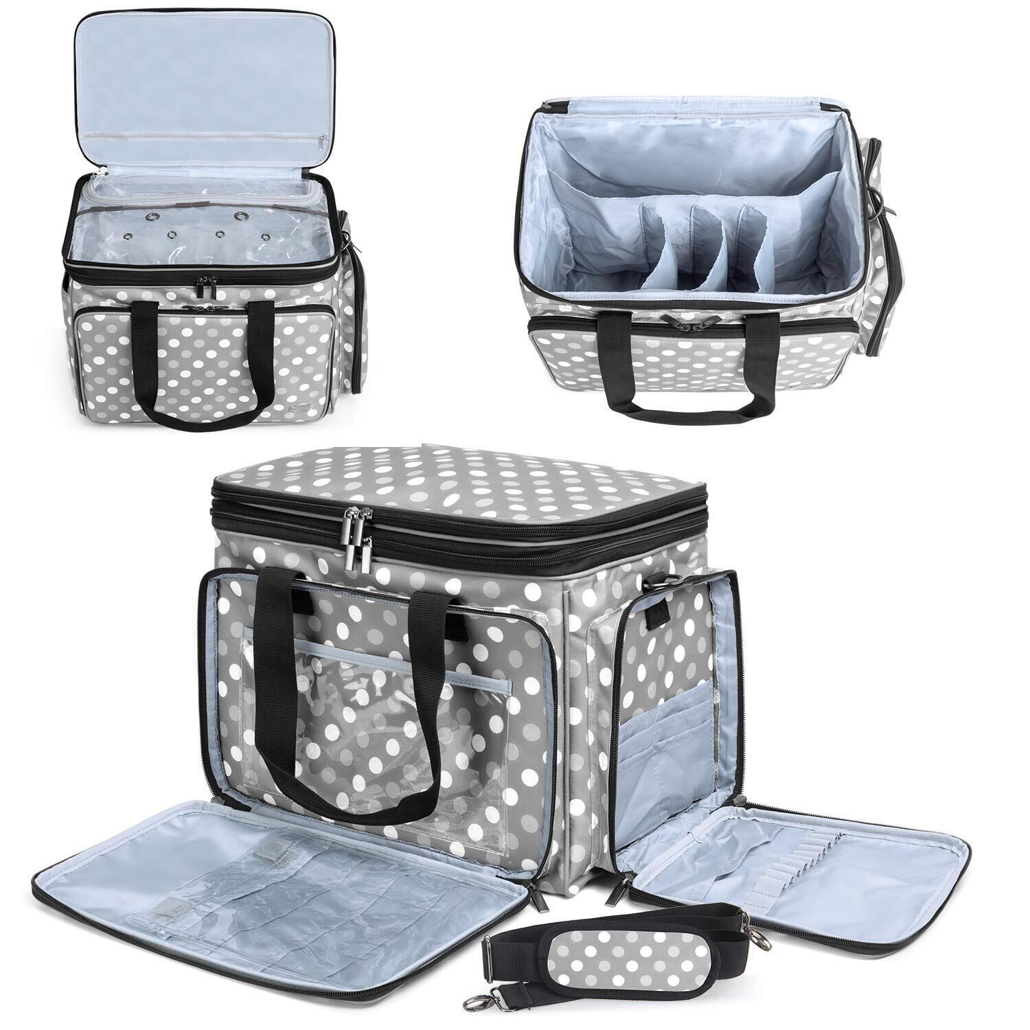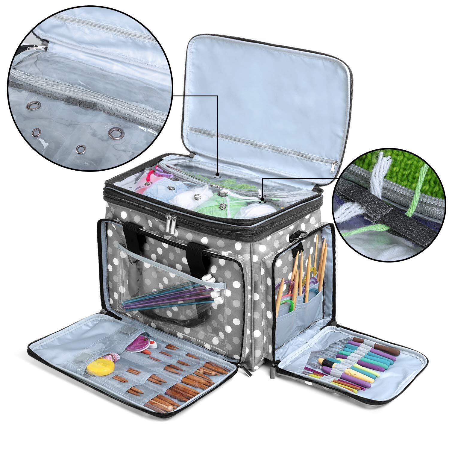【在庫処分】Luxja 編み物用バッグ 毛糸 輪針 かぎ針 棒針(14"/35cm) 編み物用品 保管 持ち運び グレードット