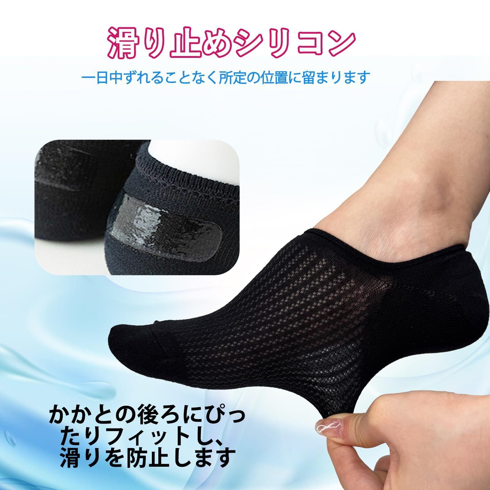 滑り止めシリコン: 脱げない 靴下 レディース ノーショー ソックスは、シリコン製の滑り止めヒール グリップが特徴で、かかとの後ろにぴったりフィットし、一日中ずれることなく所定の位置に留まります。ワンサイズ:22.0cm-25.0cm。
