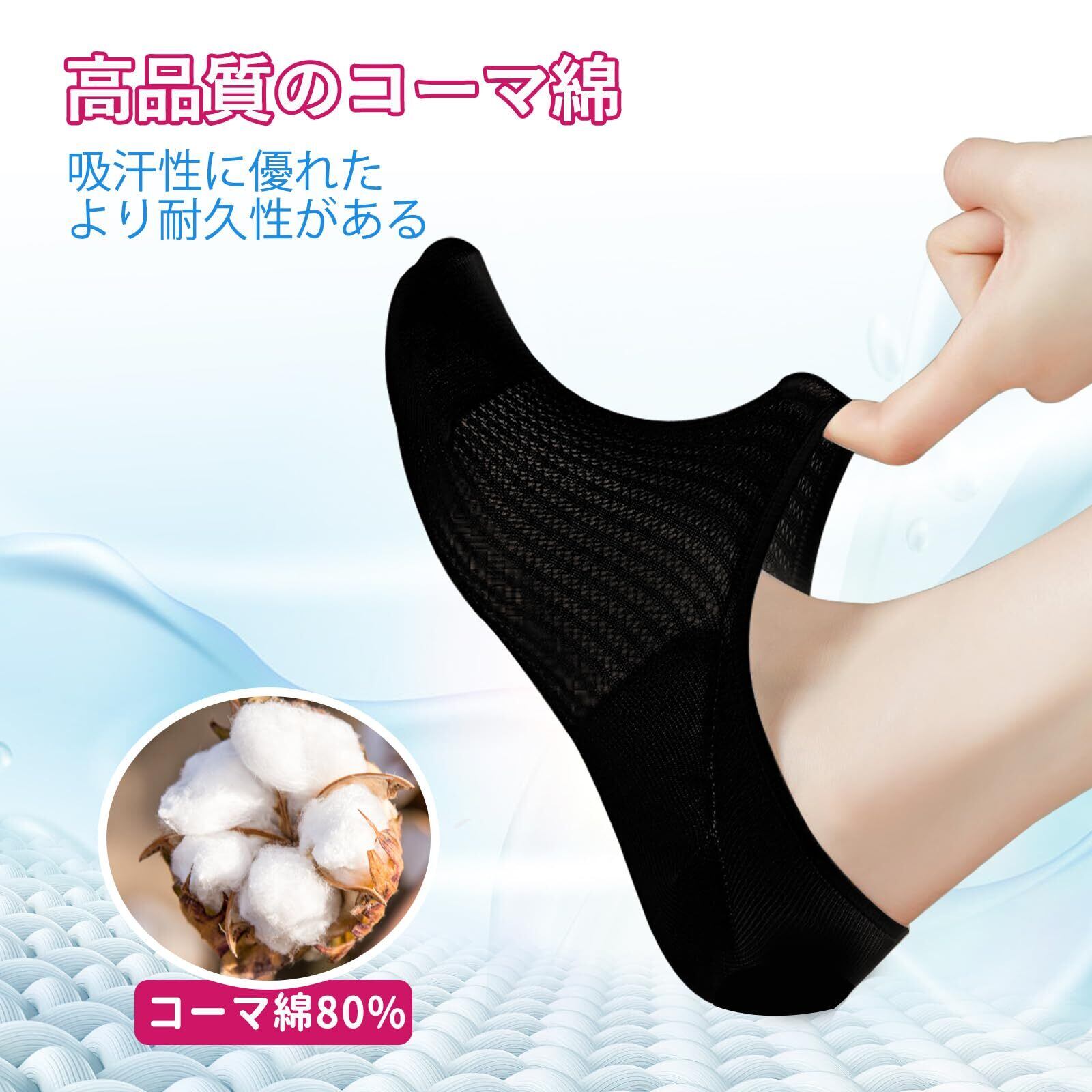 通気性のあるメッシュ: このコットン製のレディース ノーショー ソックスの甲部分は通気性のあるメッシュで覆われており、通気性と放熱性に優れているため、一日中足を快適に保ちます。