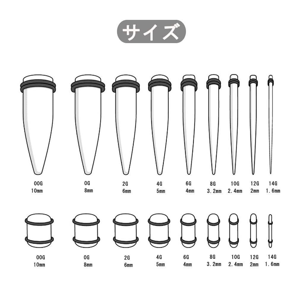 【パッケージ内容】個数:50個;9サイズセット:00G-10mm、0G-8mm、2G-6mm、4G-5mm、6G-4mm、8G-3.2mm、10G-2.4mm、12G-2mm、14G-1.6mm。