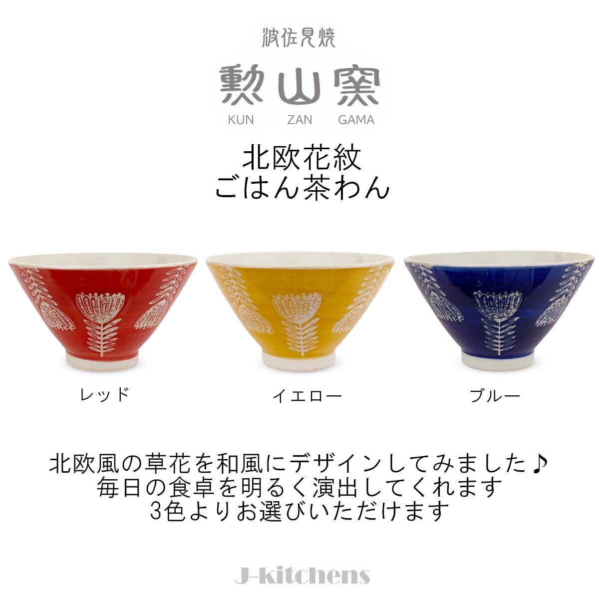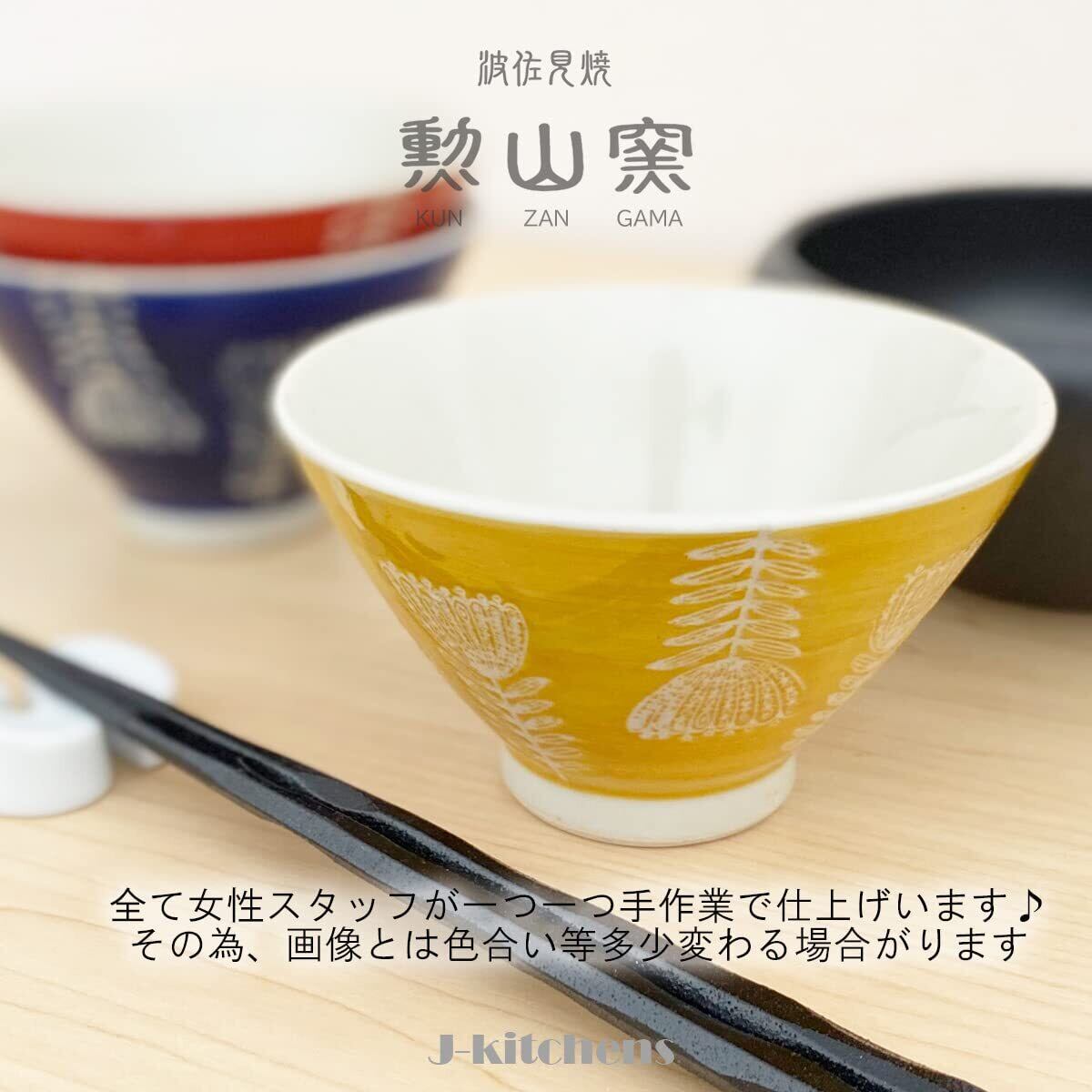J-kitchens 勲山窯 茶碗 11cm 波佐見焼 日本製 北欧花紋 イエロー