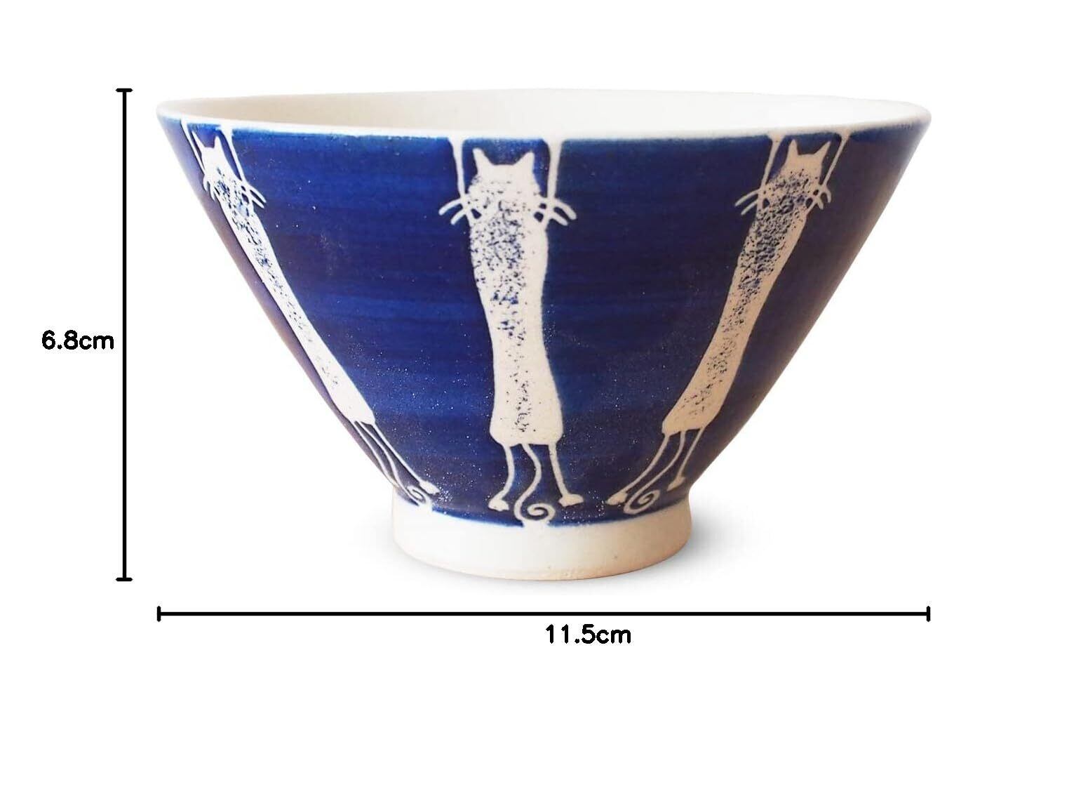 J-kitchens 勲山窯 茶碗 11.5cm 波佐見焼 日本製 背伸びねこ ブルー 磁器 270ml