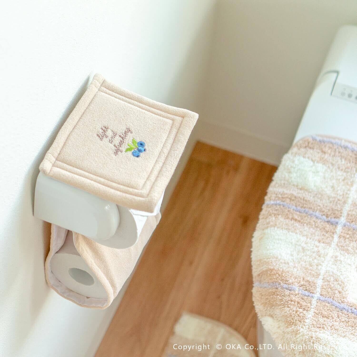 オカ(OKA) フライス トイレットペーパーホルダーカバー ベージュ (北欧 ナチュラル フルーツ チェック)