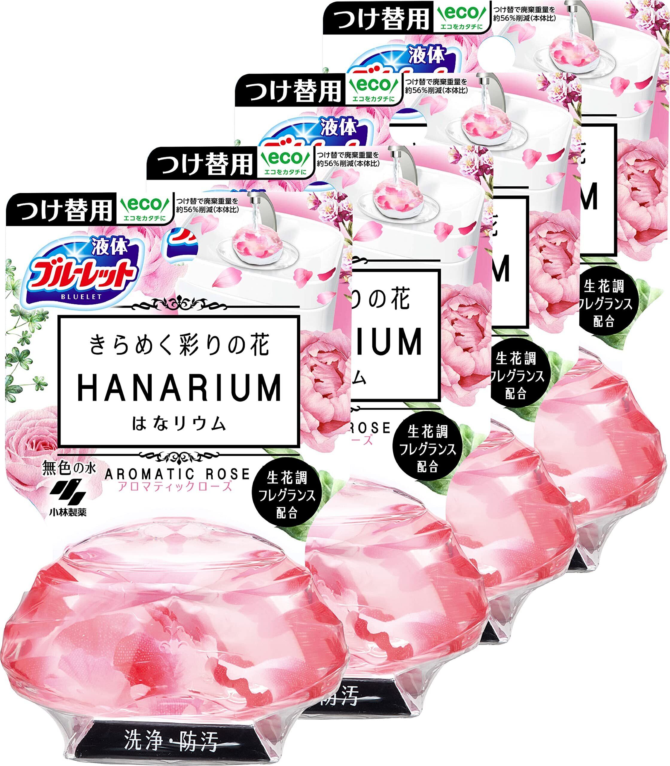 【まとめ買い】液体ブルーレットおくだけ きらめく彩りの花 はなリウム トイレタンク芳香洗浄剤 アロマティックローズの香り 詰め替え用 70ml×4個