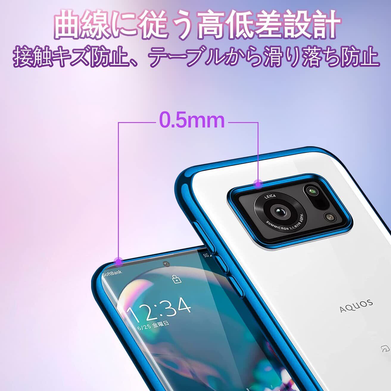 AQUOS R6 ケース クリア SH-51B SH-M22 カバー 透明 TPU 薄型 軽量 耐衝撃 メッキ加工 ソフトケース 人気 保護カバー 型(ブルー)