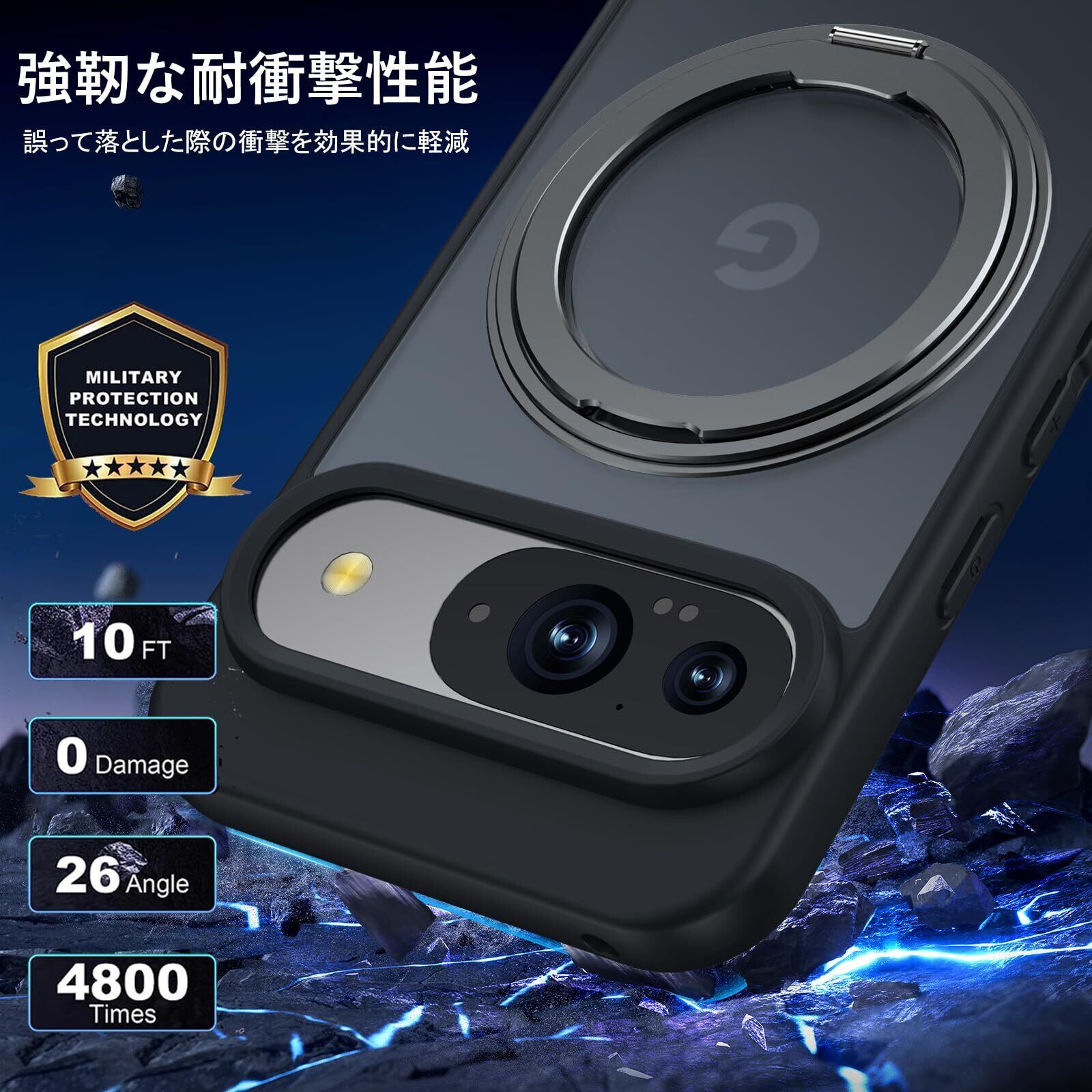 【2022最新】Google Pixel 9 / Pixel 9 Pro 用 ケース Magsafe対応 ピクセル9 プロ カバー 360°回転スタンド Uovon スマホケース 携帯ケース ワイヤレス充電 車載ホルダー 対応 ストラップ穴付き 半透明 指紋防止 黄变防止 ・ ブラック