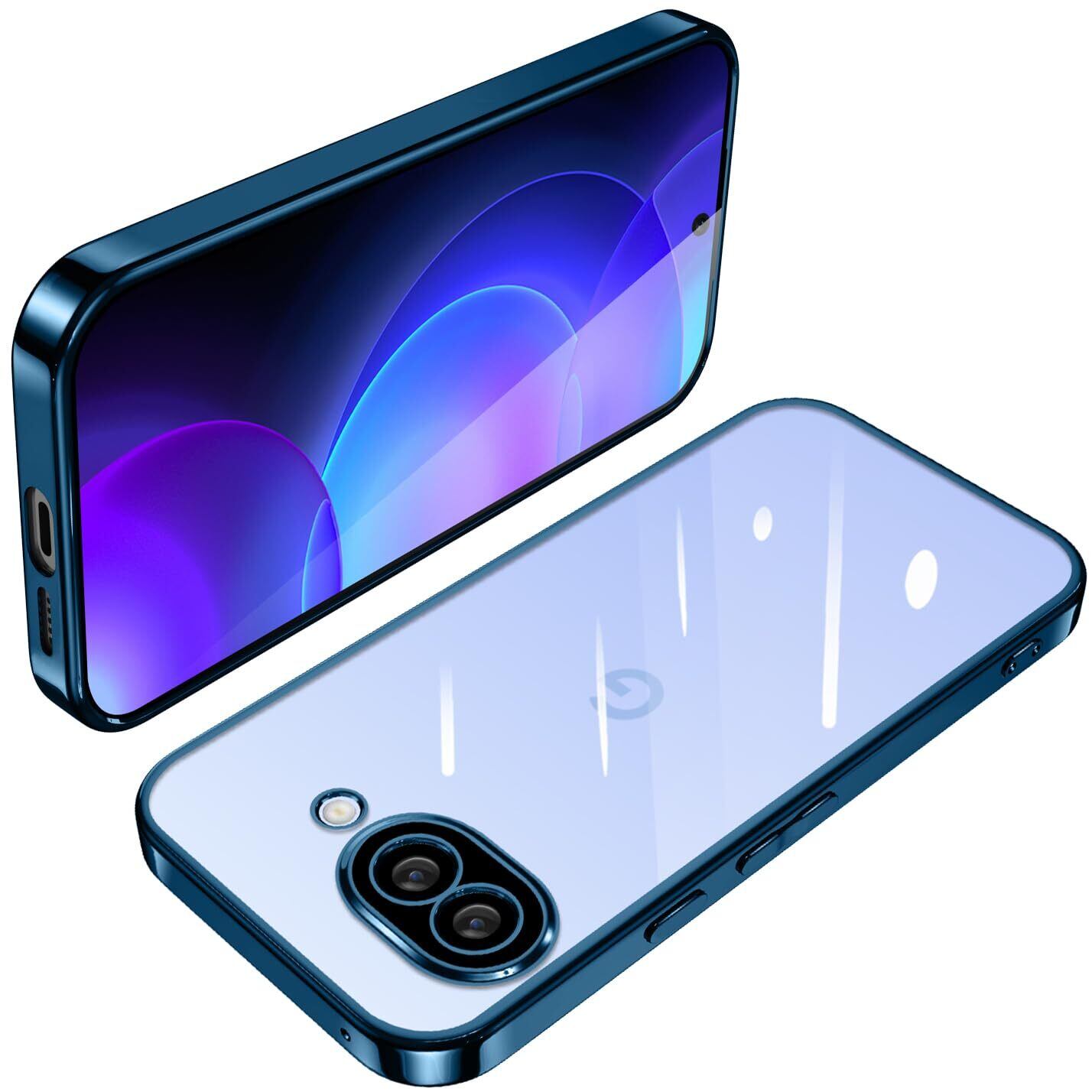Google Pixel 9A ケース クリア TPU 透明 薄型 軽量 グーグル ピクセル 9a スマホケース 耐衝撃 メッキ加工 ソフト 人気 ワイヤレス充電対応 (ブルー)
