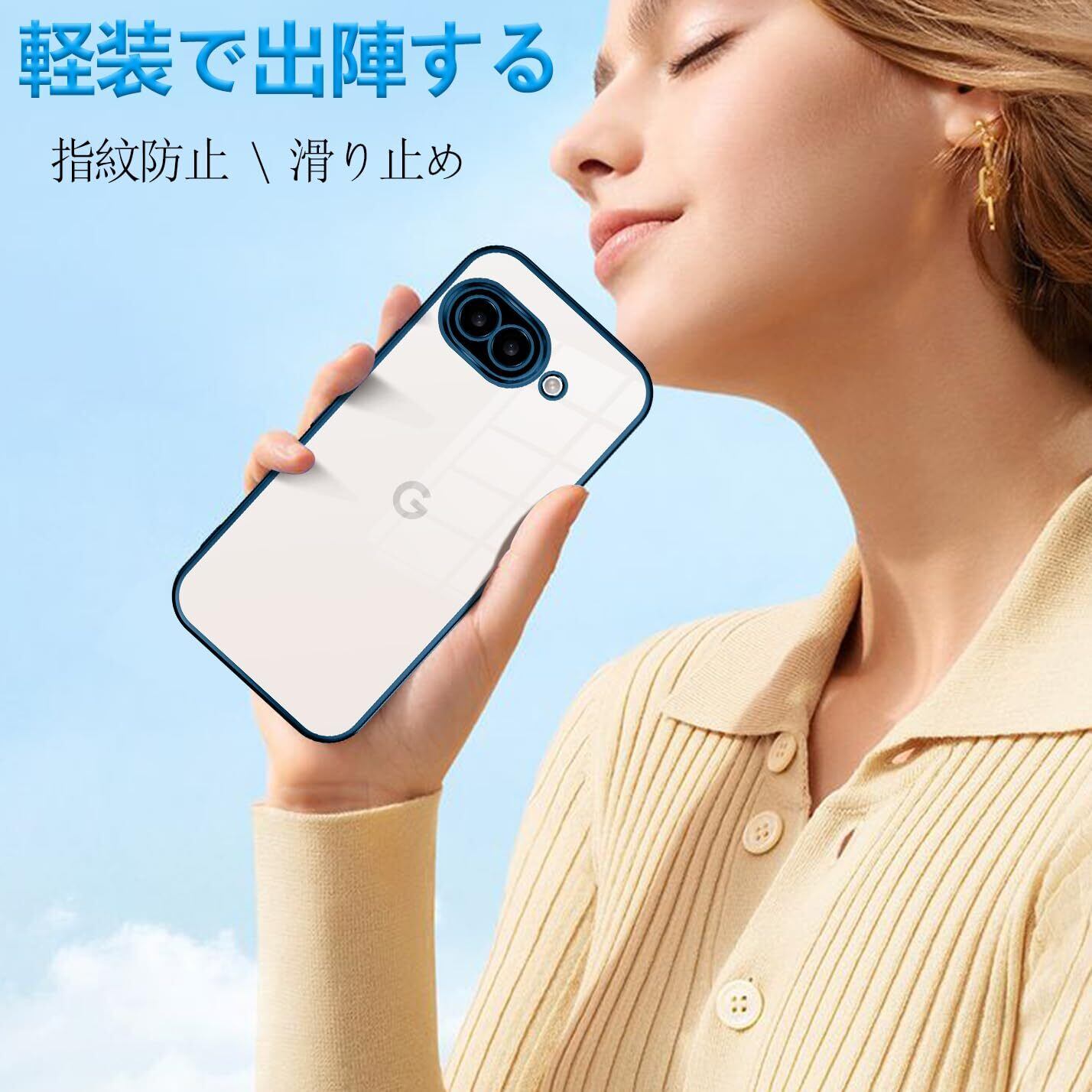 【在庫セール】Google Pixel 9A ケース クリア TPU 透明 薄型 軽量 グーグル ピクセル 9a スマホケース 耐衝撃 メッキ加工 ソフト 人気 ワイヤレス充電対応 (ブルー)