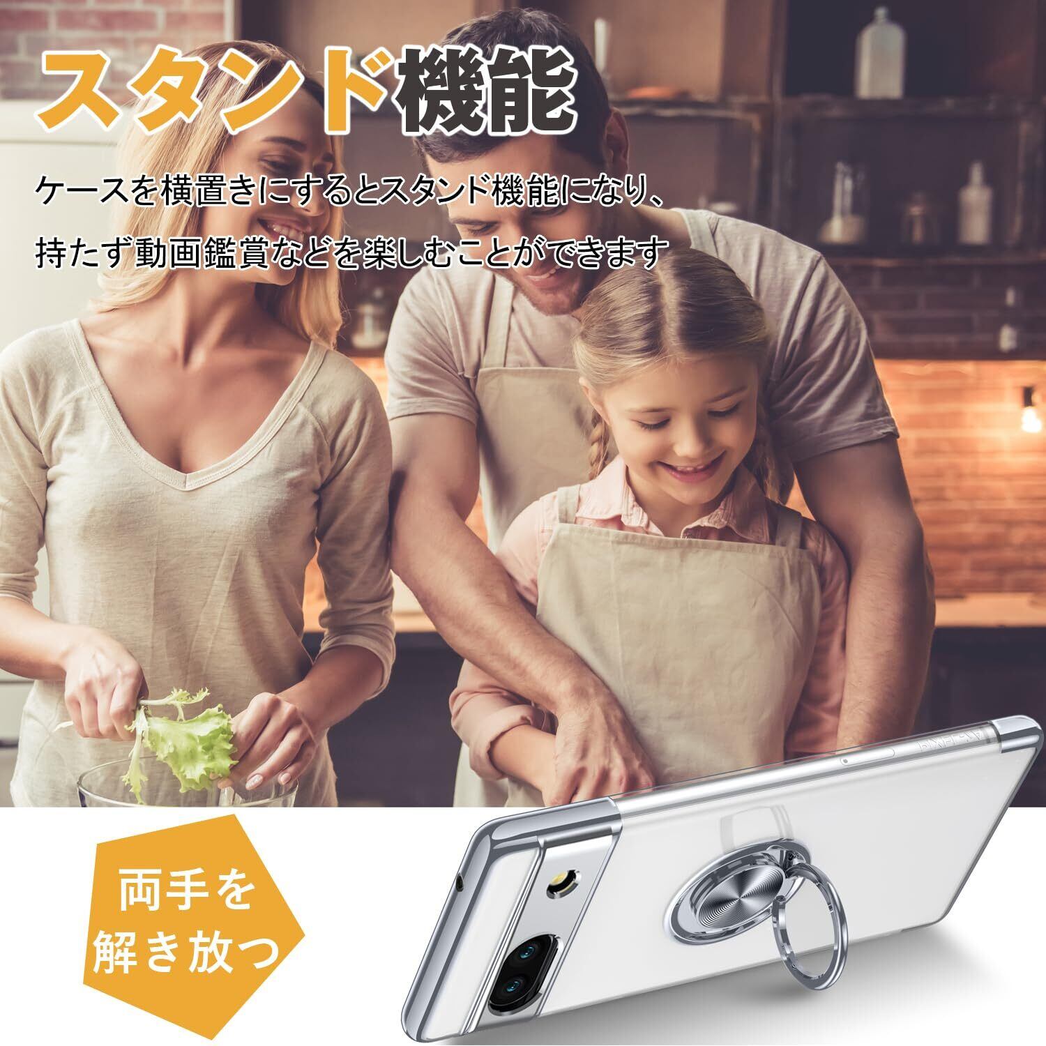 【在庫処分】Google Pixel 8a 用 ケース クリア リング付き ピクセル 8a カバー 透明 おしゃれ OURJOY スマホケース メッキ加工 ソフトケース 耐衝撃 軽量 薄型 ストラップホール付き スタンド機能 車載ホルダー対応 携帯ケース・ブルー