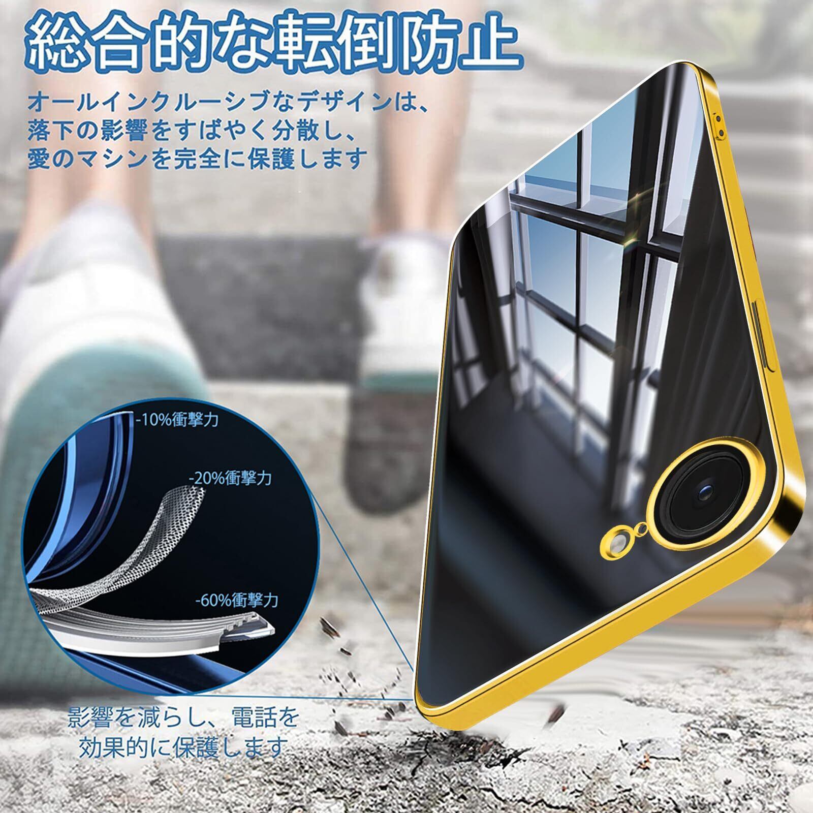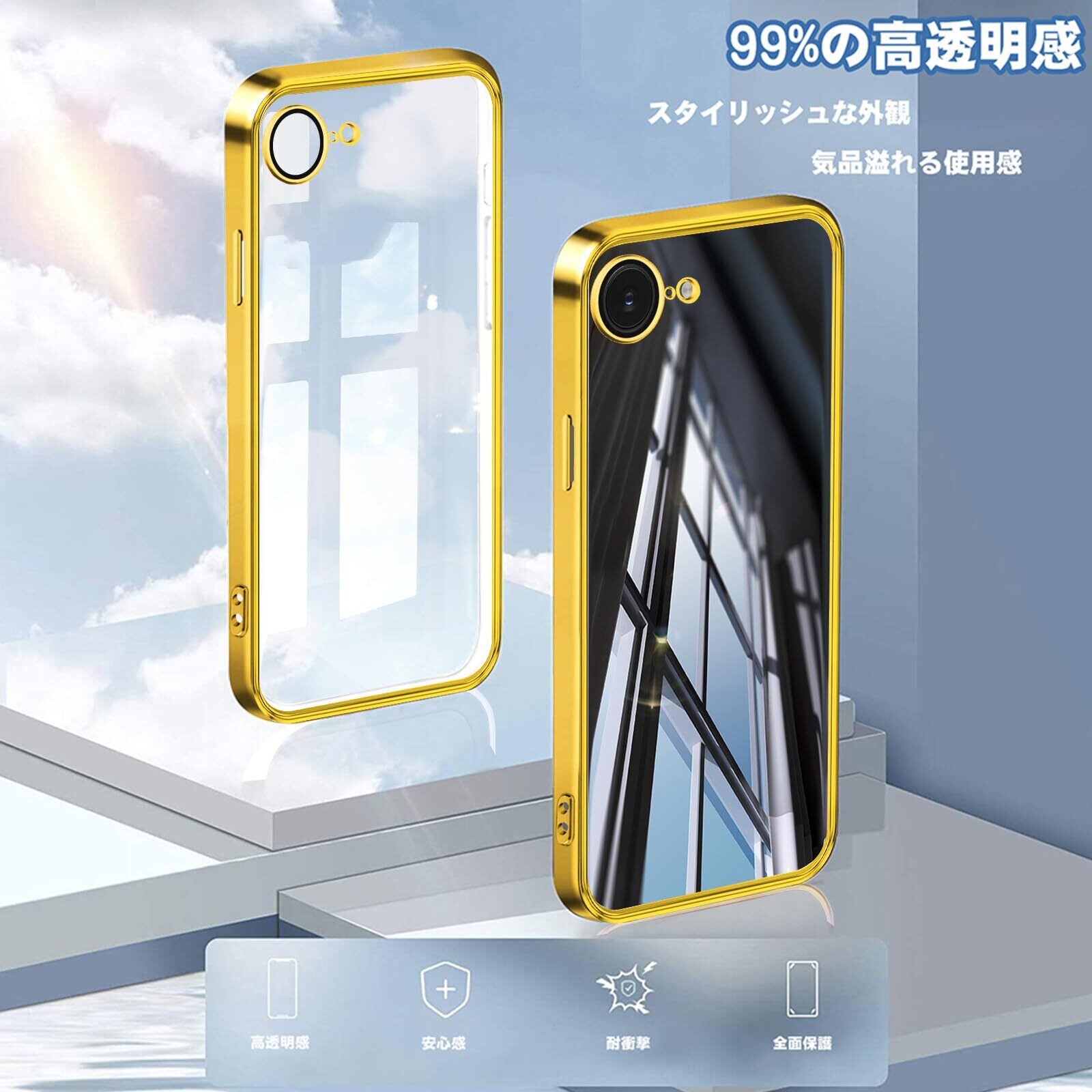 iPhone 16e 用 ケース クリア アイフォン 16e カバー カメラレンズ保護付き 透明 あいふぉん16E スマホケース TPU 薄型 耐衝撃 スリム ストラップホール付き ワイヤレス充電対応 6.1インチ iPhone 16E クリアケース ゴールド