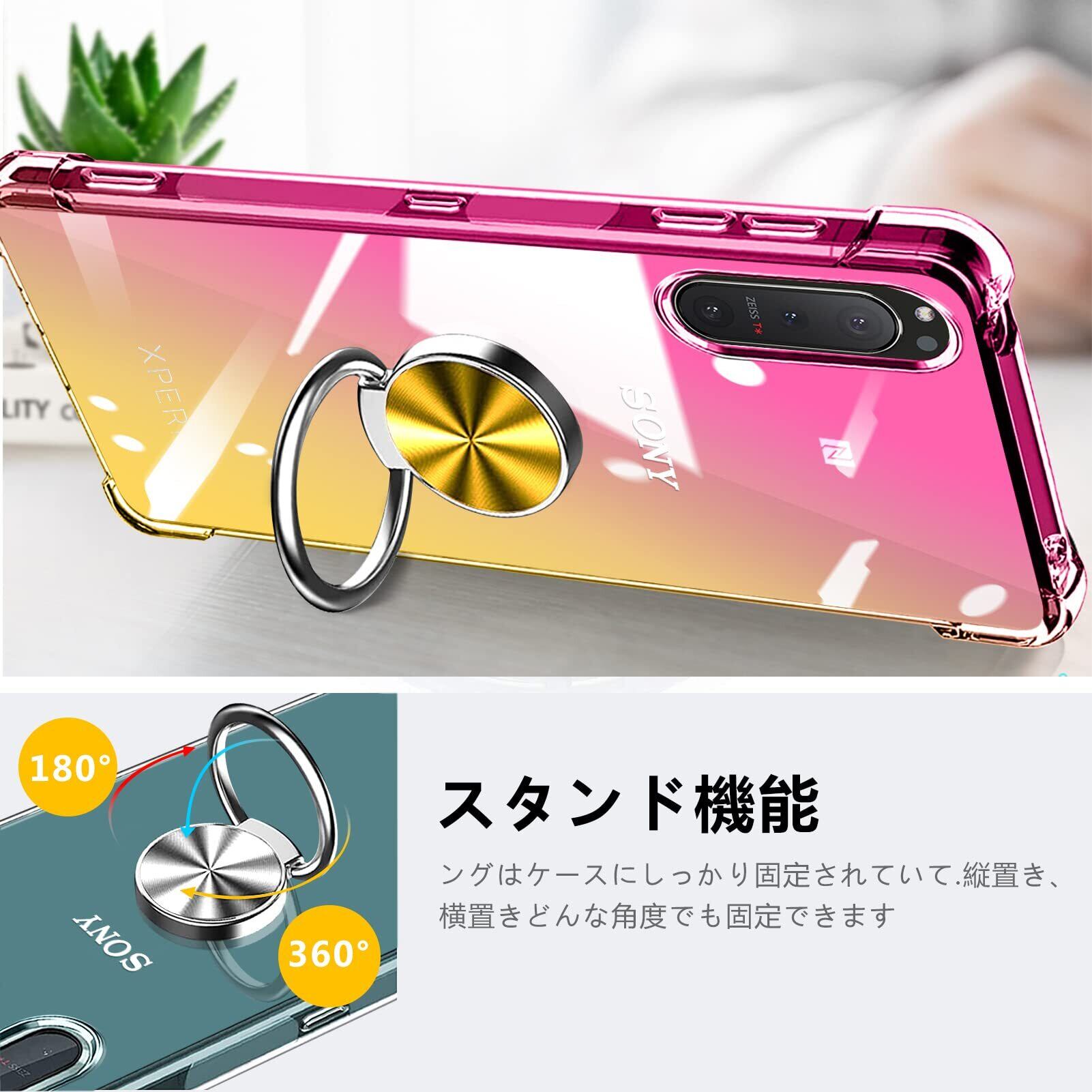 【リングの機能&スタンド機能】:360°回転可能リングホルダーです。片手で携帯を操作でき、滑り止め、強奪、落下などのことを防げます。リング.ホルダーの機能は携帯を横に放置できて、いつでもどこでも音楽、facetime、映画などの娯楽番組を思い切り楽しめます。【車載スタンド対応】マグネット対応金属板採用し、車載ホルダーに強く吸着することもできます。