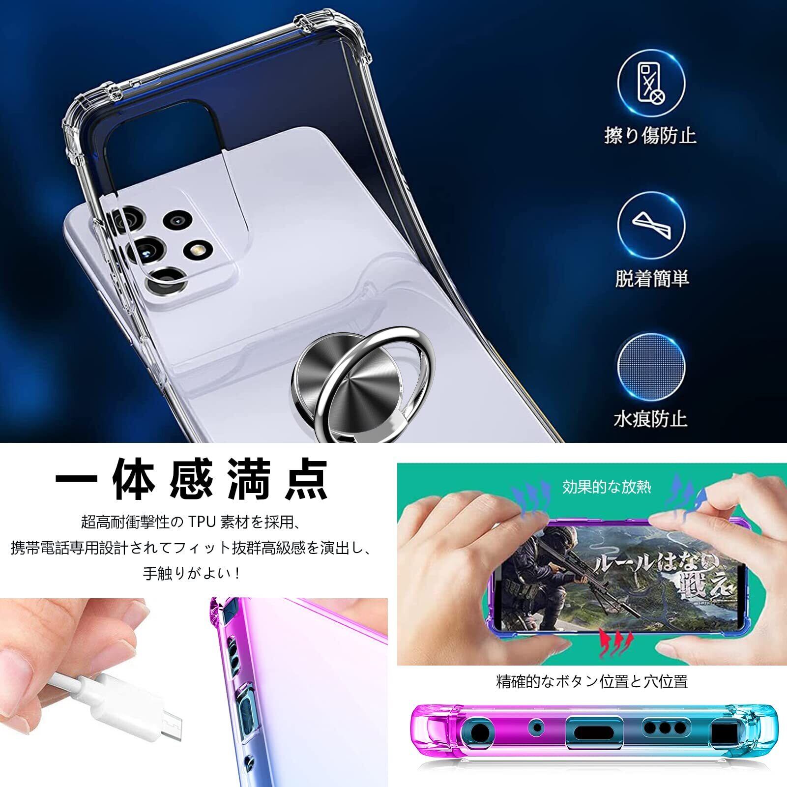 【衝撃吸収】柔軟性のあるTPU素材を採用し、外部からの衝撃をしっかりと吸収します。柔らかくから取り出し易くて、携帯の擦り傷も簡単に防止し、着脱しても傷付けにくい。