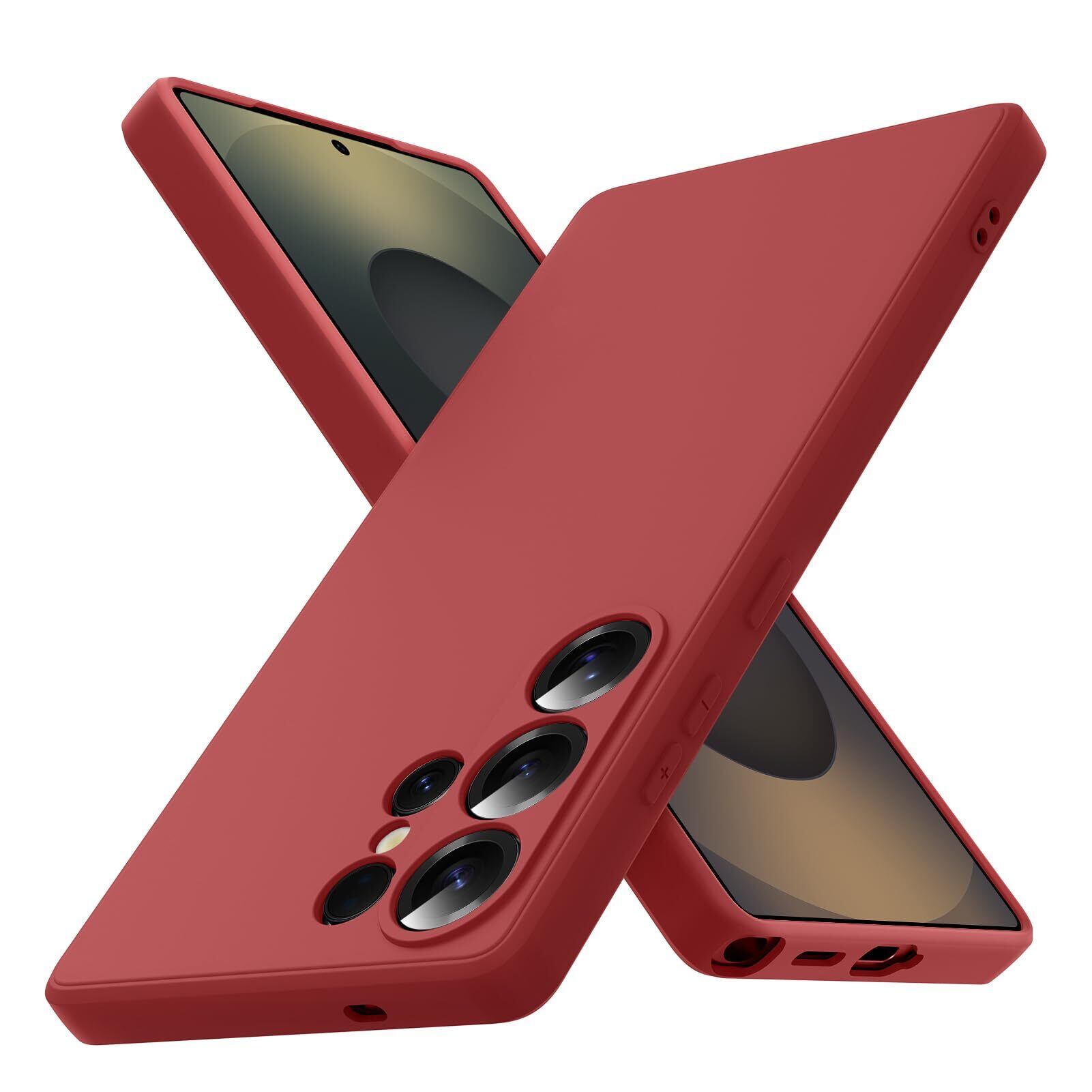 Galaxy S25 Ultra 用 ケース シリコン 耐衝撃 柔軟 カバー 薄型 衝撃吸収 人気 携帯カバー ストラップホール付き ワイヤレス充電 軽量 手触り良い 指紋防止 滑り防止 (暗赤色) 6-S25U-10