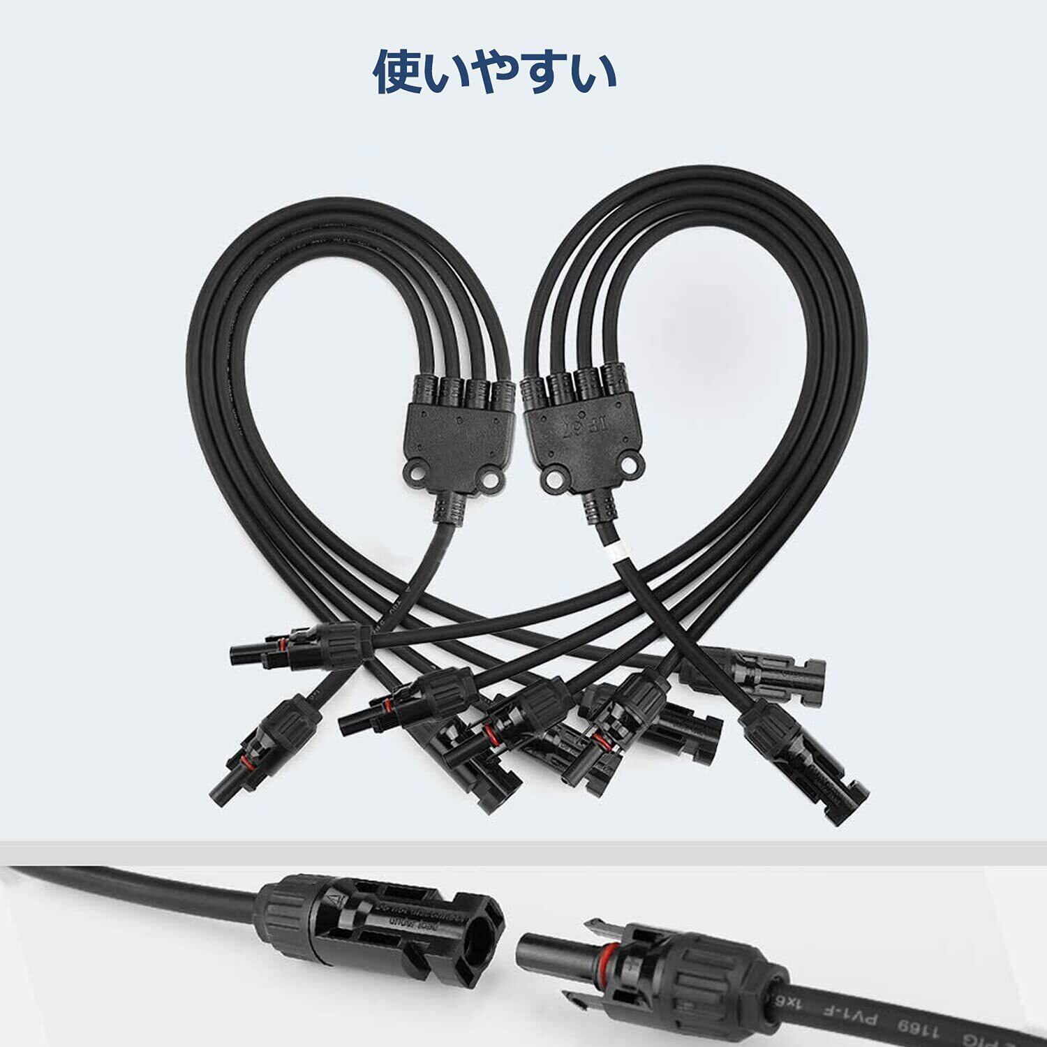 MC4 コネクター Y型並列用 MC4ケーブル ソーラーパネル並列接続 MC4コネクター 4分岐 ソーラーコネクタ オス・メス 各1本セット ソーラーケーブル 4分配 防水 防塵 UV耐久 太陽光パネル用