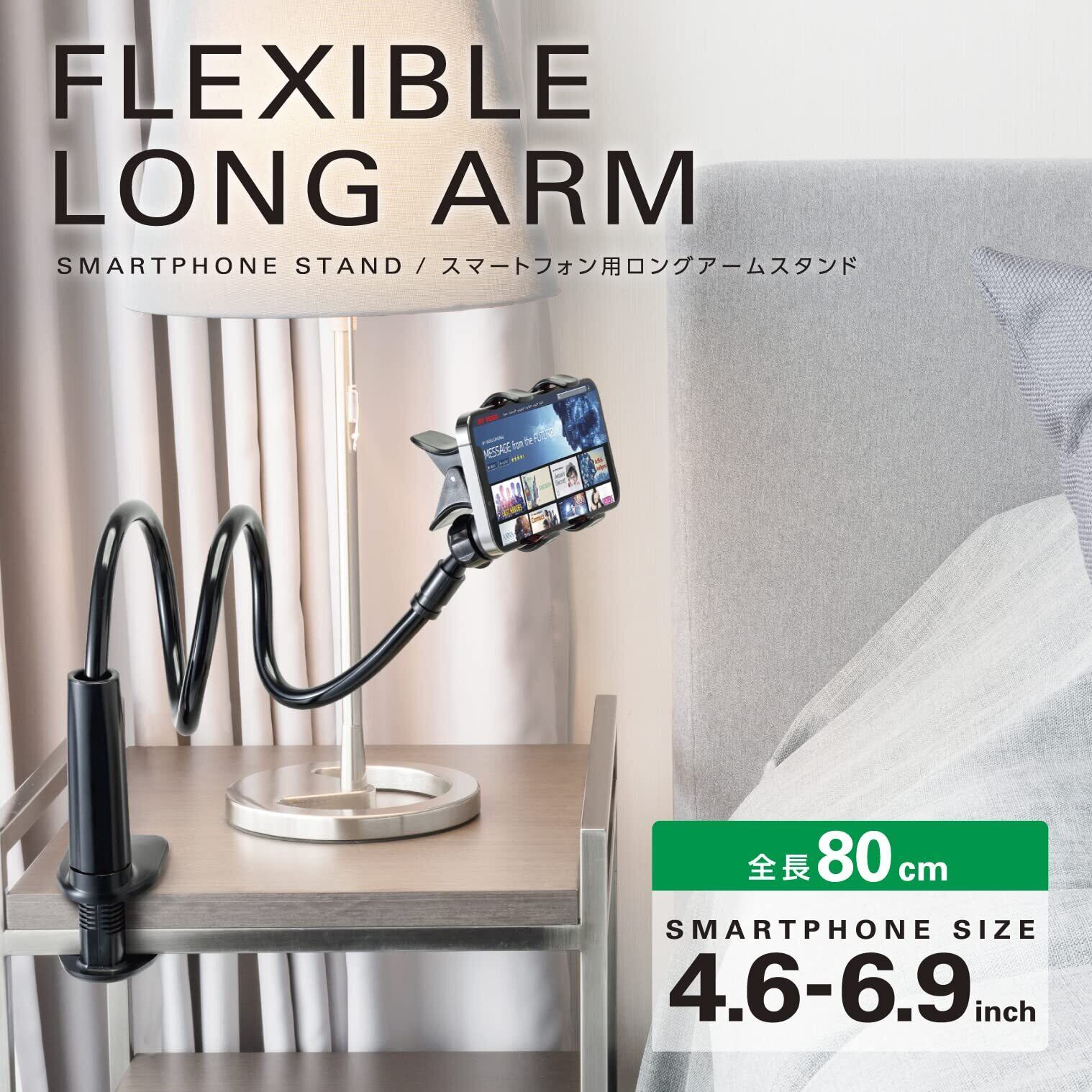 エレコム スマホ用スタンド アーム型 全長80cm 自由に曲がる(4.6~6.9インチスマホ対応) ブラック PWDSLARM80BK